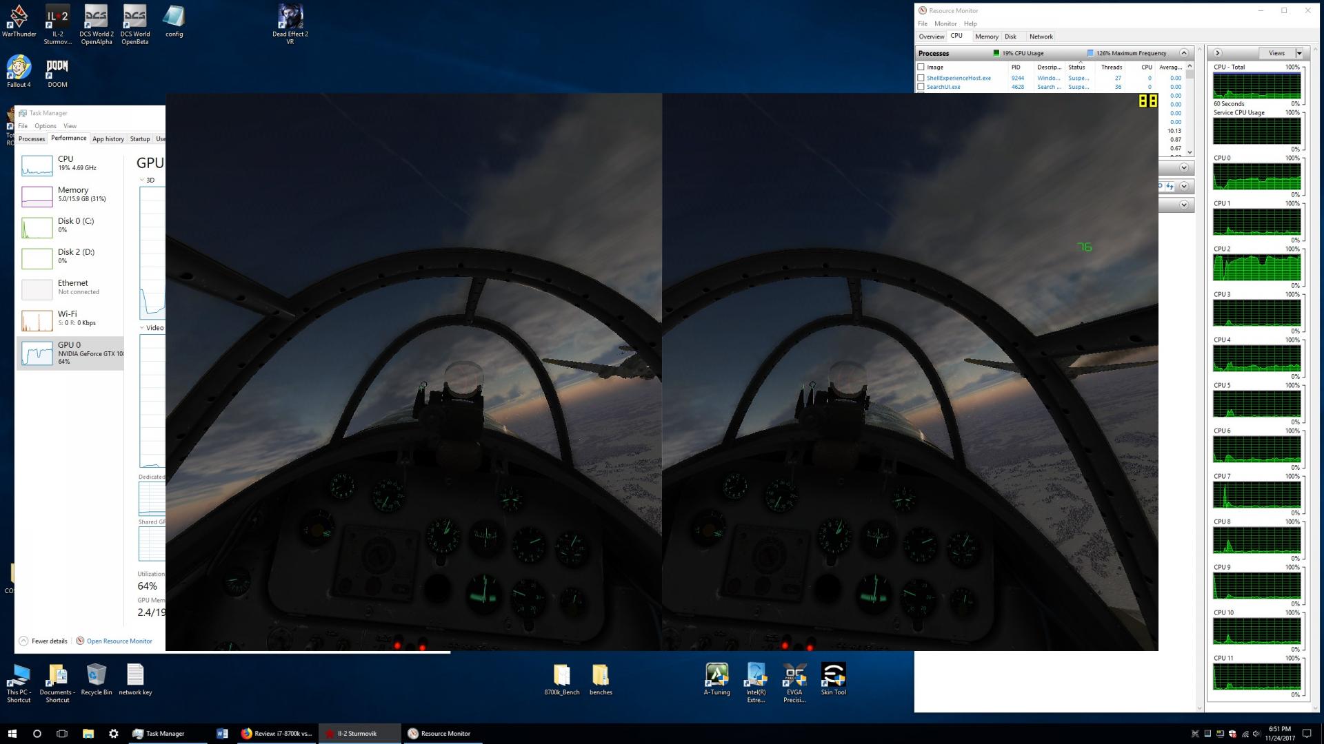 =TBAS=Sshadow14 Posted November 25, 2017 Posted November 25, 2017 (edited) hmmm thats interesting it does that...Heres my IL2 core loadings on the 8350(Nothing else in background running i even have all aero and advanced windows themes disabled and all auto updates on my system disabled)FX8350 @ 4.2GhzGTX1060 G1Windows 7 Home premium X64Watching a replay with big dogfight lots of explosions and effect over that graph time periodCore 0 = 40% | Core 2 =17% | Core 4 = 22% | Core 6 20% | Edited November 25, 2017 by =TBAS=Sshadow14