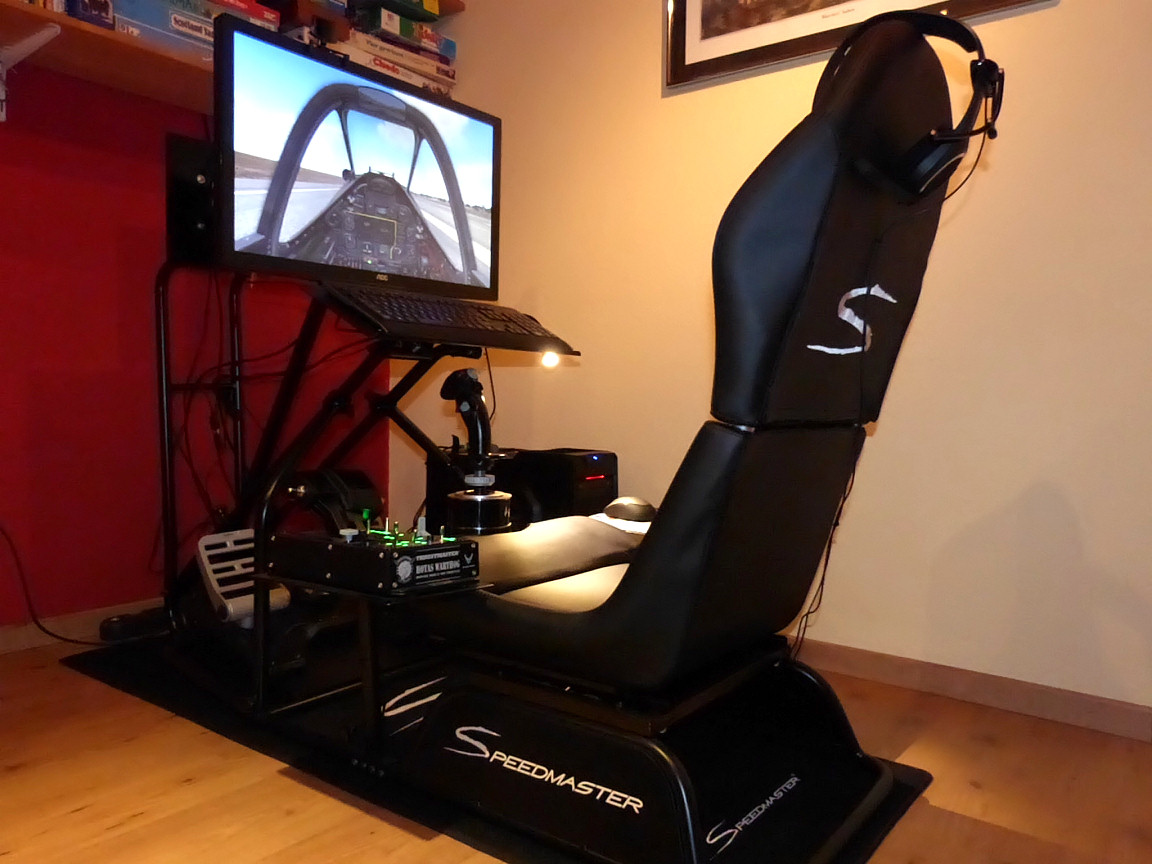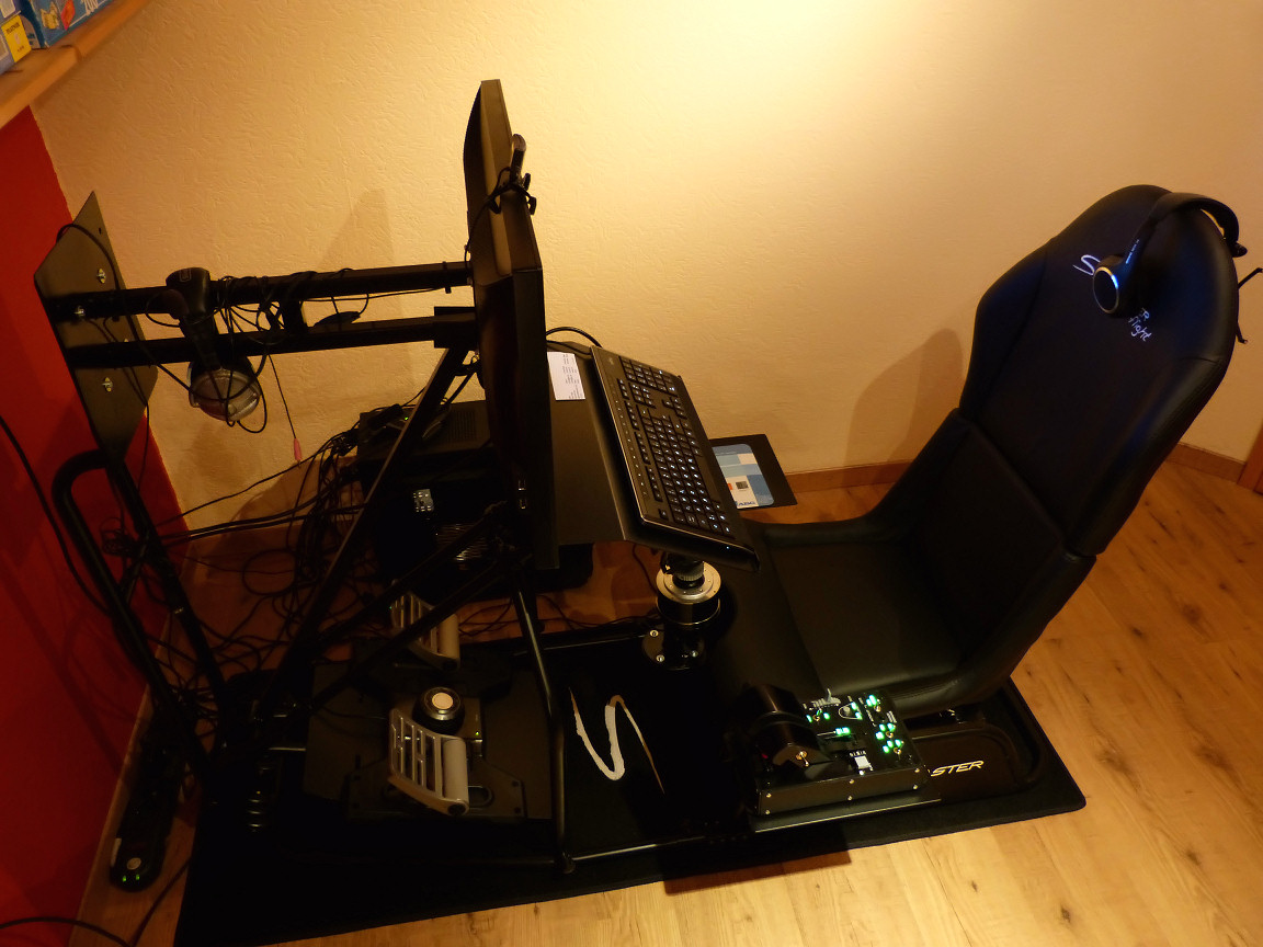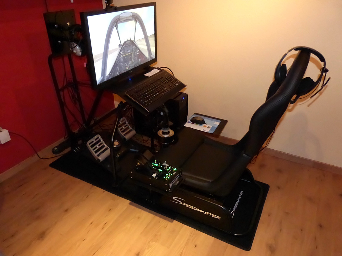 Rango Posted December 21, 2013 Posted December 21, 2013 Hi all I guess there are a lot of sim-pilots who built a special gear to enhance the flight simulation feeling. May be it's a fixed base system with a special seat (possibly with a selfmade cockpit?) or even a moving gear (up to a full-flight simulator system). Anyhow - if you use a special simulation gear I want you to make it public here. To contribute something to this topic by myself, here is my gear (even if it's only a modest affair): It's a Speedmaster Flightseat with some selfmade modifications:1. additional mounting plate to get the monitor closer to the player 2. additional mounting rack to raise the Thrustmaster stick to a convenient position) Other used gaming devices: TrackIR 5, Thrustmaster HOTAS Warthog, Saitek F-16 Pedals, Headset Sennheiser PC 323D Monitor: AOC 2795E (resolutuion 1920x1080)PC: MSI Z77A-G41, Intel i5-3570 3.4 GHz, 8GB RAM, Nvidia GTX 660 Ti 3GB GDDR5, Windows 7 64 Bit SP1 Okay, looking forward to see your posts to this topic. Rango 1