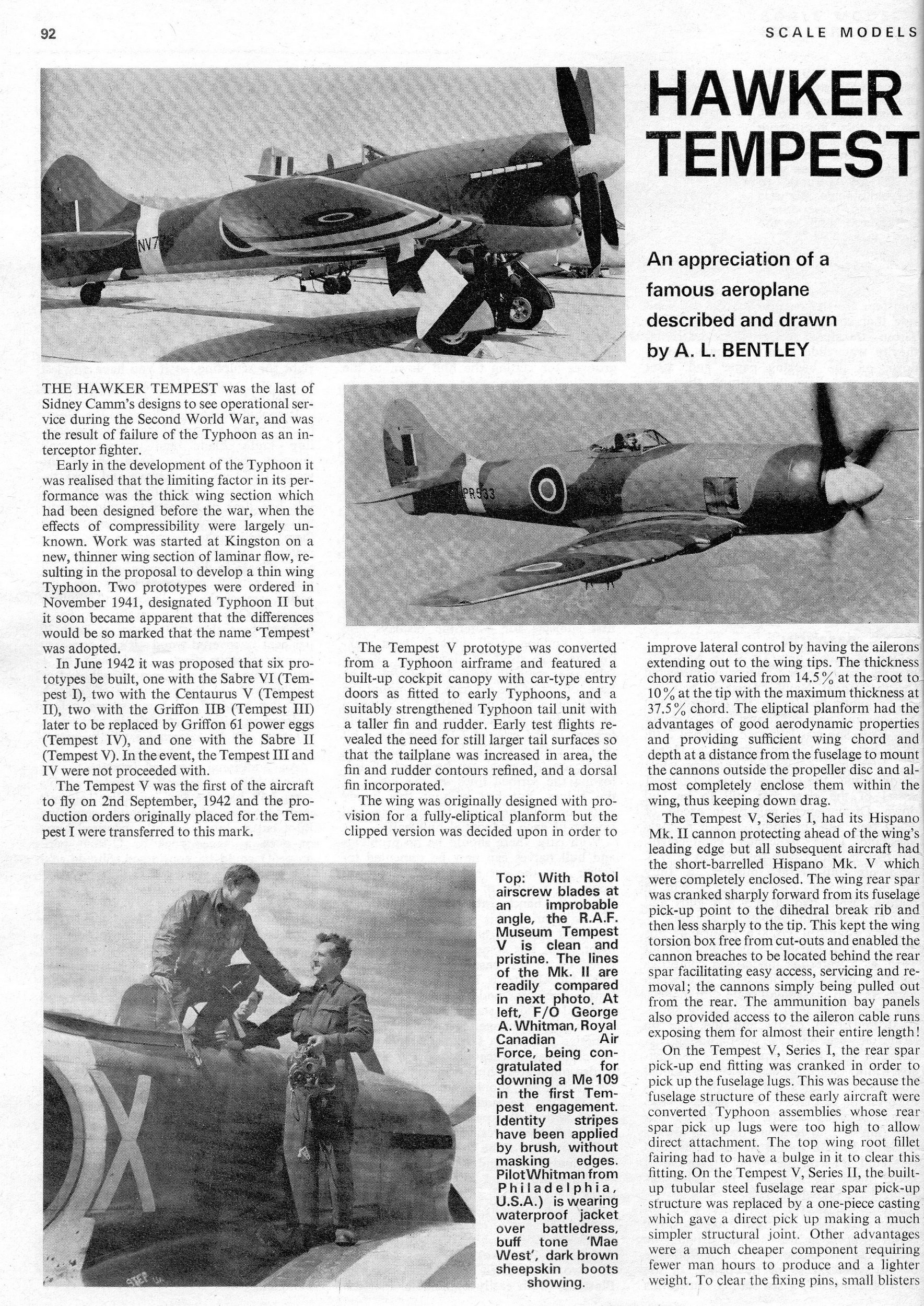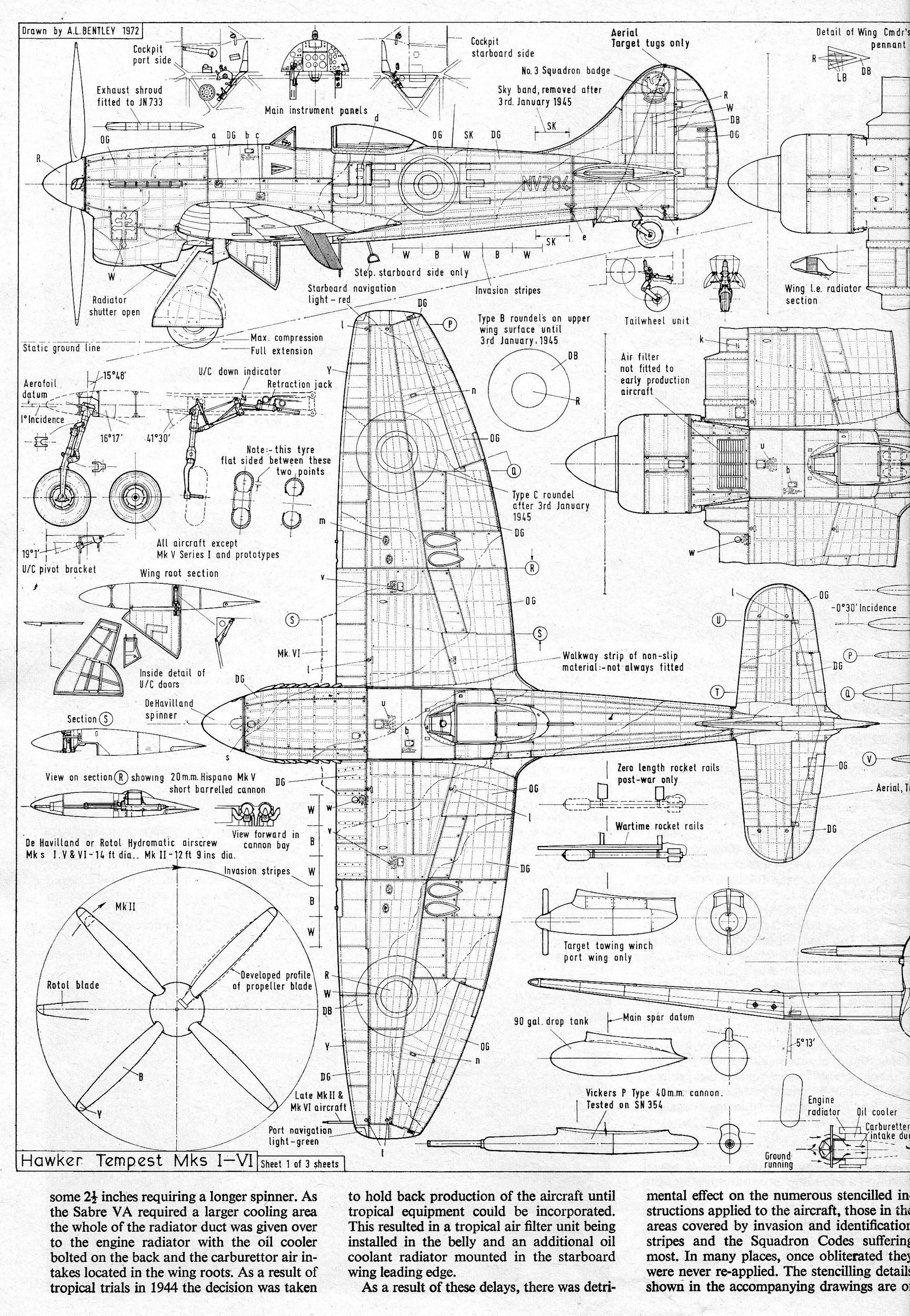 NZTyphoon Posted August 25, 2018 Posted August 25, 2018 5 hours ago, Talon_ said: Need to get some late Tempest pics (no Sky band, no sky spinner and with yellow border C1 roundels). I didn't find too much on the Imperial War Museum website. Do we know if these barrel stubs (image 1 only) are transitionary? They don't seem to feature on most aircraft. Edit: C1 roundels clearly visible on Clostermann's bird uppers For interest, a few years ago I found an old 'Scale Models' magazine from waaay back in 1973, that had an excellent article on the Hawker Tempest written by A. L. Bentley. The main points about the differences between early production "Series 1" Tempest Vs (JNxxx serials) and "Series 2" (EJxxx, NVxxx, SNxxx) : * Series 1 = most used long barrelled Hispano IIs; Series 2 = short barrelled Hispano V; * Series 1 = wings weren't able to carry drop tanks, bombs or rockets; Series 2 = wings reinforced, plumbed and wired to carry drop tanks and ordnance; *Series 1 = rear spar pick-up structure and fuselage structure from Typhoon, as described in attachment... In addition, but something not noted by Bentley, the wheels on the Series 1s were ex-Typhoon 5 spoke, whereas those of the Series 2s were slightly narrower, 4 spoke. Continuing with Bentley's article (hopefully, of some use to the developers?) 2
