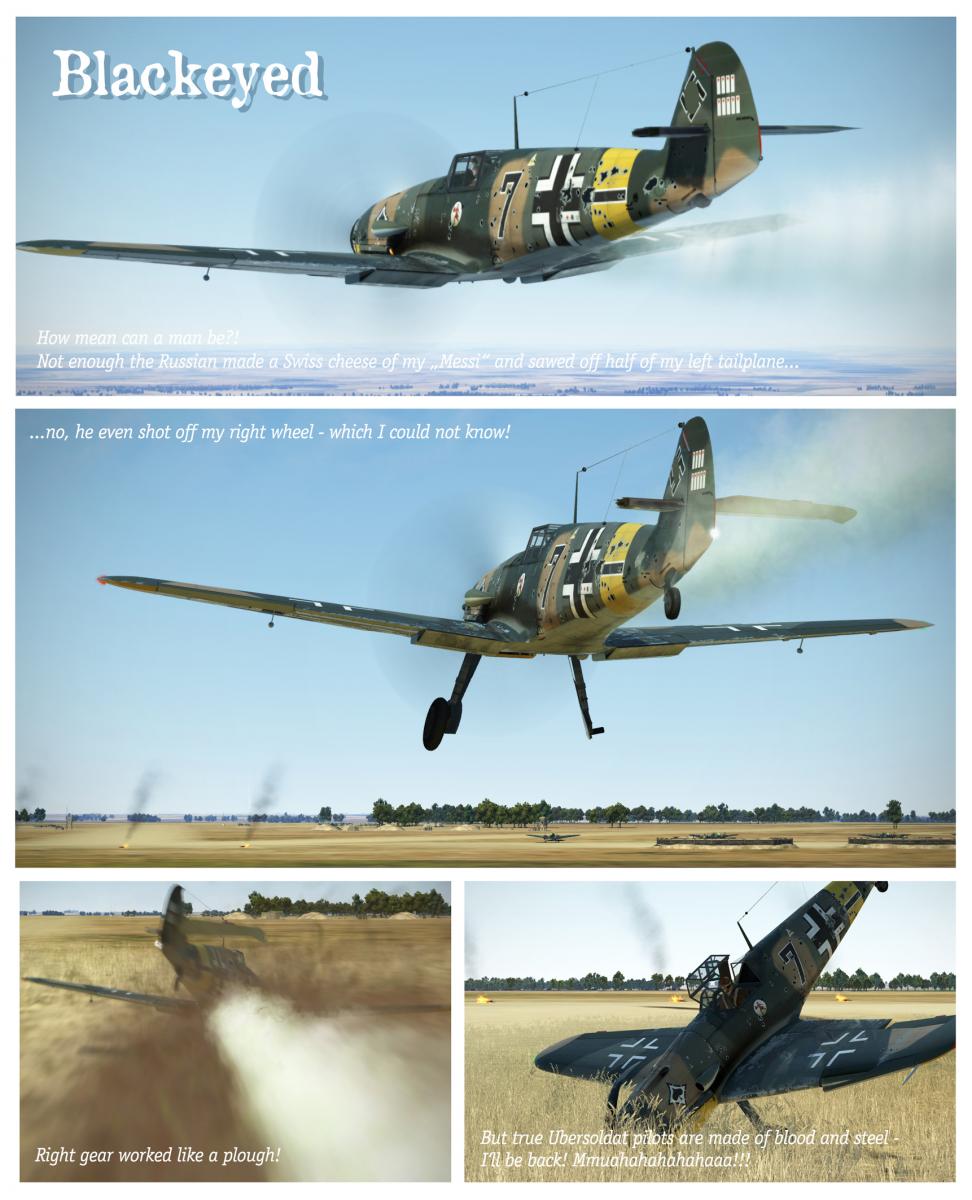 Wolfram-Harms Posted January 22, 2018 Posted January 22, 2018 (edited) Only recently, I had my right wheel shot out of it's well during combat! I had no knowledge about this and later tried to land on my airfield. The right gear ploughed into the groung, and I nosed up my Bf 109! I was really confudes, what I had done so badly wrong - until I watched the TRACK I had recorded...! Here are some pictures! (click image to enlarge) Edited January 22, 2018 by Wolfram-Harms 1