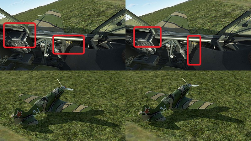 THERION Posted February 16, 2018 Posted February 16, 2018 (edited) I also notice the same thing. Look for instance at shadow underneath the bullets in cockpit. Left (Ultra) is sharp and right (High) is jagged. It's all about the shadow'ss resolution in cockpits - or at least it seems to me? On the picture (taken from Storebrors SAS-post) I highlighted the noticeable areas. Edited February 16, 2018 by EAF_T_Therion