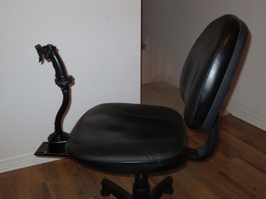 BlueHeron Posted March 2, 2018 Posted March 2, 2018 (edited) I'm posting this in different forums in case someone would like a similar solution. I'm currently using this with the VKB Gunfighter Pro, as opposed to a desk mount. A friend with a metal shop is willing to build and sell more of these. It's a little on the heavy side, but rock solid with an excellent grip. The stick is perfectly placed and there's no chance of wiggle or shifting. Compared to desktop sticks, this feels like the real deal. It simply attaches to the chair piston, and the base plate can be custom made for any brand of control stick. I highly recommend this! It might look like it gets in the way for other things, but it sits low enough that you can detach the grip extension from the VKB base and you won't even know the mount there. Edited March 2, 2018 by BlueHeron