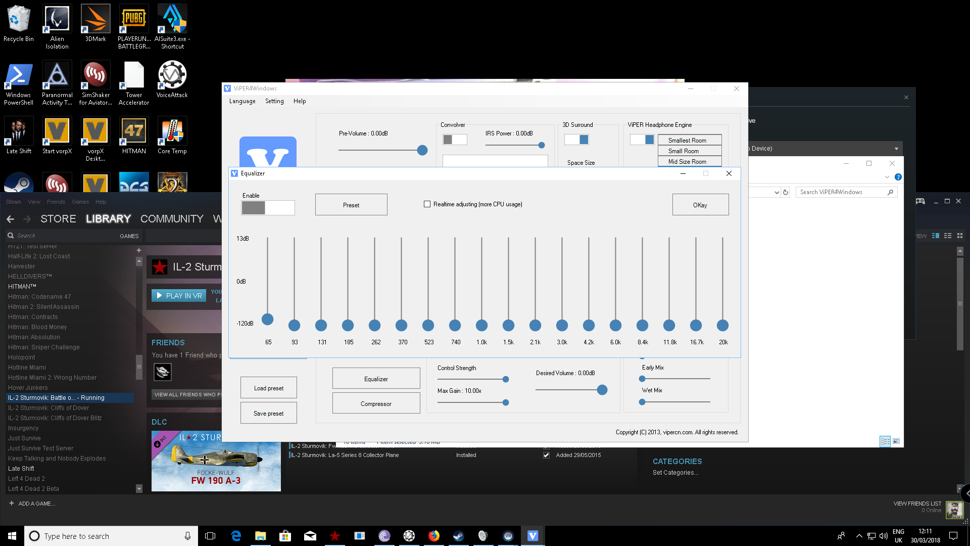Wolf8312 Posted March 30, 2018 Author Posted March 30, 2018 (edited) Well these are my settings running though the external soundcard (Using this is easier because I dont have a good wire to connect JS to vive comfortably). I don't know if they are the settings you are talking about. Using the equalizer bellow defo has affect on the vibrations and intensity of the jetseat, I just cant seem to filter out the guns etc. Edited March 30, 2018 by Wolf8312
