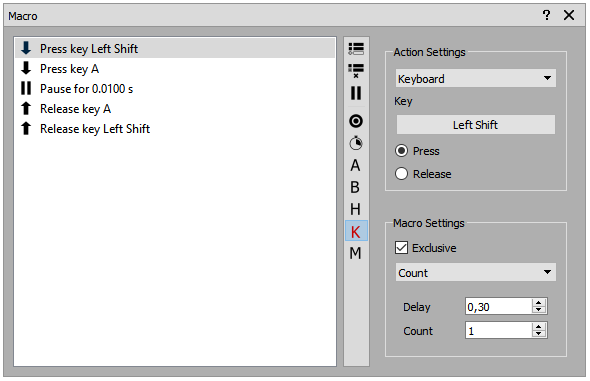 jokerBR Posted April 4, 2018 Author Posted April 4, 2018 (edited) Hi Sokol. Sure! Of course the point is not to use this with autopilot, I completely agree that this is not what a true sim is about. My plan is to use those extra switches on my panel to operate CEM and weaponry (bombing setup, etc), using way more "complicated" combos, including timing and several functions "in-a-row" for every switch, but as I found out, autopilot and level flight were two "simple and similar commands" that were showing problems, with the added bonus that they are quick to test (just start the sim and engage to "see" the result). Also, my motto is "if you want to test something to be "bullet proof", start attacking were it is flawed". After figuring out how to solve this one, I would consequently have the knowledge to solve all others. Also, the point was to solve the problem once and for all, not to find a shortcut by changing the original commands (i.e., avoiding using L or R shift/control keys, etc). I ended up solving the problem using Joystick Gremlin (thanks to you). After contacting WhiteMagic (Joystick Gremlin's dev), he pointed out how to do it and I figured out the rest Basically, I had to use macros to mimic the keypresses instead of simply "mapping" the key combo to a switch ( I found out that the timing options like the pause between key press and release and also Macro Count = 1 with 0,30 delay are *very* important when sending commands to BoX/RoF): and for condition just use "Actions" for press and release: My USB controller is "tailor made" for this panel, developed and built by the same guy that made all the cutting and mounting, João Augusto Casa (or JACSim). You surely wont find it on the broad market. He builds complete sets to emulate full size 737 cabins (occupying a small room), with *all* digital screens, switches, gauges, lights, alarms, buttons, etc working - just like real life). One of his cabin sets is at a local flight school, and some flight companies even use them to re-check pilots from time to time! Few days ago I told him that you were helping me and asked if he knew you (as I understand, you're a Brazilian too, right?), but unfortunately he didn't. Our small niche of "hardcore aviation enthusiasts" isn't so small after all... Cheers. Edited April 4, 2018 by jokerBR Trying to delete double image post. Unsuccessful.