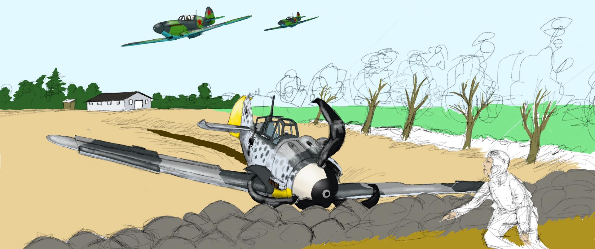Finkeren Posted January 9, 2014 Author Posted January 9, 2014 (edited) Trying something in color this time: A rare loss for the Luftwaffe in the western Ukraine in late summer 1941. This is very, very early WIP (a couple hours in) with most of it still just rough sketching and base color. Edited January 9, 2014 by Finkeren