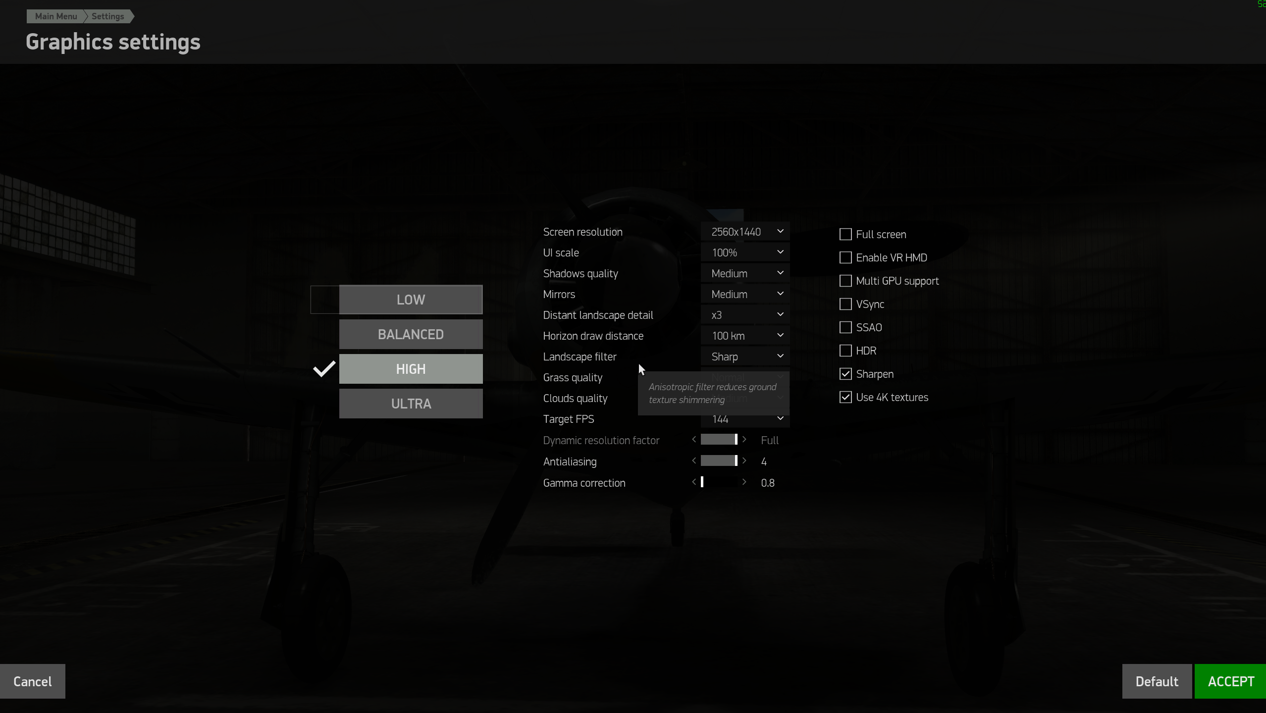 SCG_klobuk Posted April 27, 2018 Author Posted April 27, 2018 Once again thank you all for your feedback, suggestions and quick responses. I will also try that texture filtering quality setings. I just want to sum it up so far because I am very satisfied with my settings now: 1. Adjust nvidia settings accordind to Jordans post (disable NV filtering, SSAO...) 2. If you have G-sync monitor turn this functionality off 3. Adjust your monitor color settings. Basically try to make the in-game menu look more dark but with more satturation and contrast. 4. Optional, if you have head tracking software make sure that force feedback function in camera options is turned off otherwise you will have little lags.