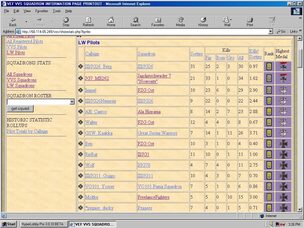 JG7_RudeRaptor Posted September 18, 2018 Author Posted September 18, 2018 (edited) On 6/18/2018 at 1:16 PM, SCG_Hoss said: The original tournament in the beginning was"Fighter Sweeps" 2v2, 4v4, 6v6, 8v8, red skins against blue skins, didn't matter what plane you used. Some very intense dog fights, start off on airfields about 10k apart, take off climb like hell and merge head to head...... last plane in the air won. Hoss I think you might be thinking of early Ghost skies or another tournament. I flew with JG27 there was tournament that only consist of fighter sweeps only and then you would switch sides. VEF and VEF II was not really like that. It was more campaign based than a tournament When I interred VEF I which was around 2001. You had two options Defend (Flying CAP) or attack, which you had the option to fly escort or take a bomber. The map moved based on the mission results. VEF II started right after and at that time the COOP options where you could Attack and defend in the same COOP. Edited September 18, 2018 by JG7_RudeRaptor
