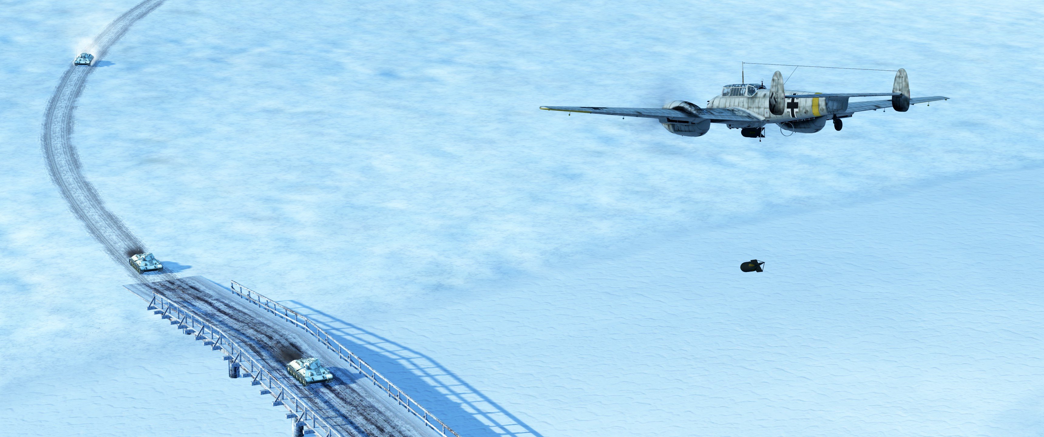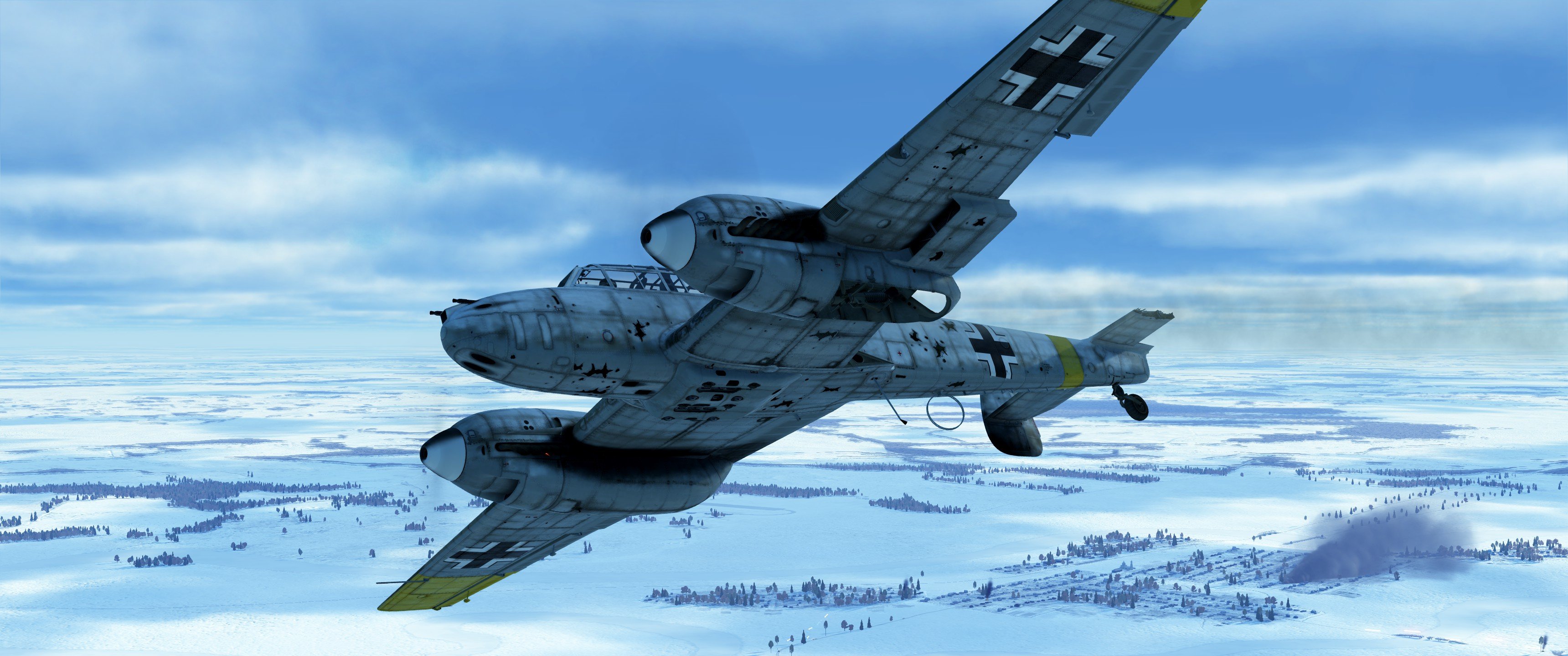 Popular Post NETSCAPE Posted June 16, 2018 Popular Post Posted June 16, 2018 (edited) DOWNLOAD Set during the brutal winter of 1941-1942, this historically based campaign tells the fictional story of Hans Müller. After the failure to capture Moscow during Operation Typhoon, German forces were holding their positions against fierce Soviet offensives along the Rzhev-Vyazma Salient. Due to high Soviet losses these battles became known as the "Rzhev Meat Grinder". During this time the intense sub-zero temperatures seemed to keep the skies above the salient and Moscow devoid of the Luftwaffe. There was one exception to this however, the Bf-110's of II./ZG 26 stationed at Dugino. As a wingman you will fly a variety of sorties including close air support, bombing, intercept and escort missions. Timeframe: January 24-28, 1942 Unit: II./ZG 26 Available aircraft: Bf 110 E-2 Duration: 16 missions Average playtime: 8 hours Languages: English, German, French, Spanish, Russian and Polish. This campaign requires "IL-2 Sturmovik: Battle of Moscow". I'd like to thank my original test team, translators, editor and anyone else that helped along the way. Cover Art commissioned by rOEN911 Historical Skins (not in screen shots) by: E69_julian57 - I accept donations of collector planes or even BoX's. Edited October 22, 2018 by NETSCAPE 21 23 10