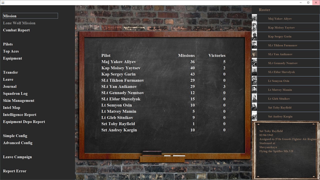 Skipper- Posted August 5, 2018 Posted August 5, 2018 (edited) Inspired by the UI mods, I made a generic dark grey UI mod as I wanted something cleaner. I have not edited every UI element and have kept some of the original images. This mod has been made for use with the mod tool JSGME, which prevents the overwriting of default files. Installation guide 1. Download and unzip the attached zip: Mod - PWCGCampaign plain UI.zip 2. Place the Mod - PWCGCampaign plain UI folder into your JSGME MODS folder. 3. Activate Mod - PWCGCampaign plain UI in JSGME 4. Enjoy PWCG DOWNLOAD > Mod_-_PWCGCampaign_plain_UI.zip REPLACEMENT TEXTURES (2x) If the swastika is illegal in your country, you will need to replace the ServiceLuftwaffe.jpg and NoServiceLuftwaffe.jpg files with these instead. Edited August 6, 2018 by Skipper- Updated buttons 06/08 2