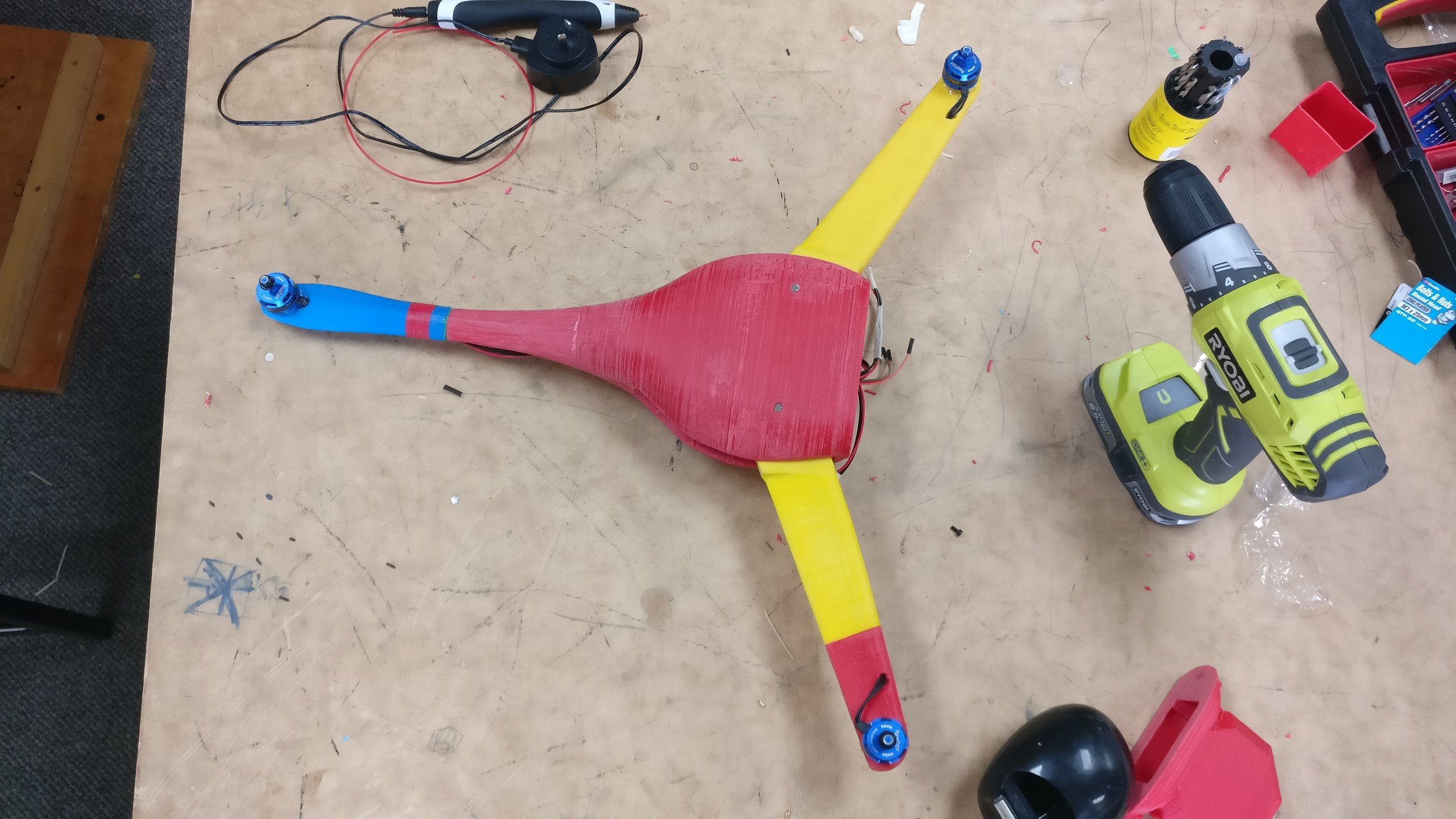Stumble Posted September 4, 2018 Author Posted September 4, 2018 (edited) I haven't been able to do much recently. Been real busy with school!! Got done important exams coming up soon Anyway, I've done a bit of assembling. Here's what I have so far. I think I'll have finished adding all the hardware this week. That one arm is a different color because it ran out of plastic halfway through. The blue bits were printed separately and then glued on. S! Stumble. Also, those blades on that other drone (a class mates one) are cut short. My ones are gonna be two blade ones which are alot bigger. Edited September 4, 2018 by Stumble