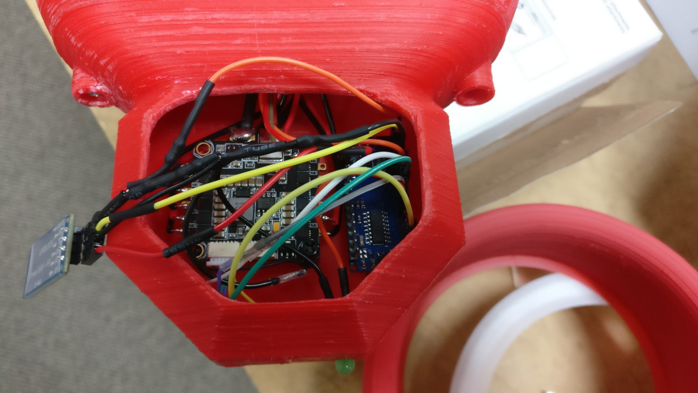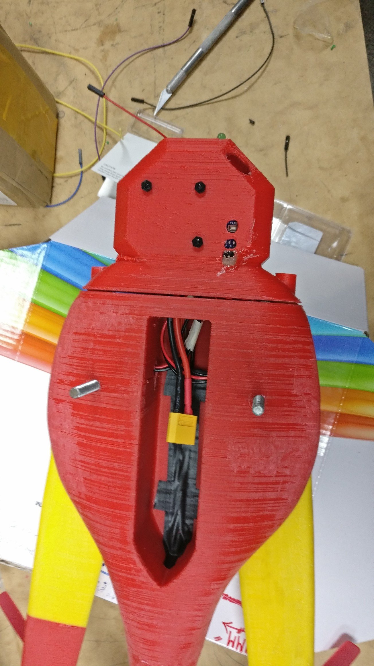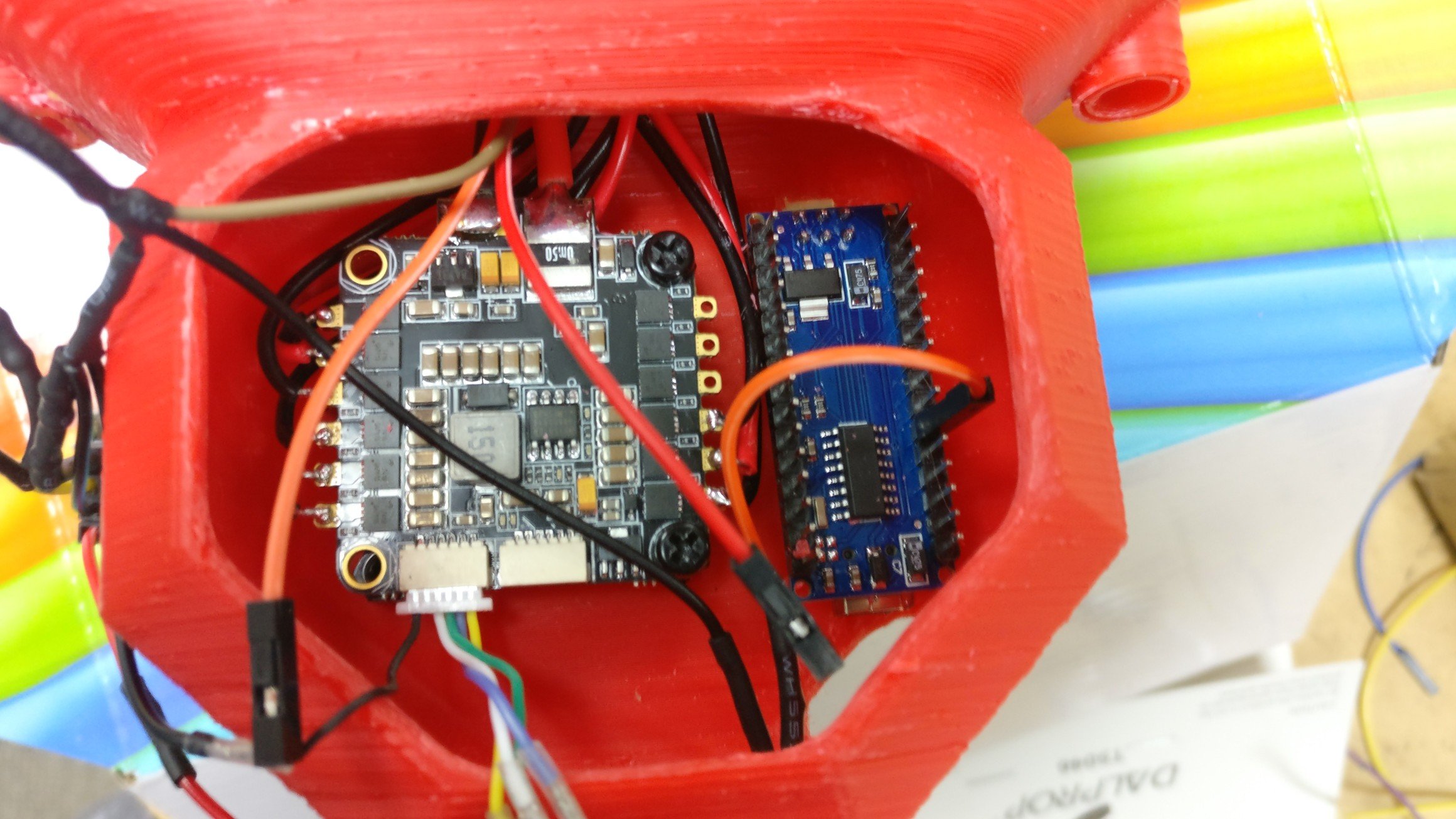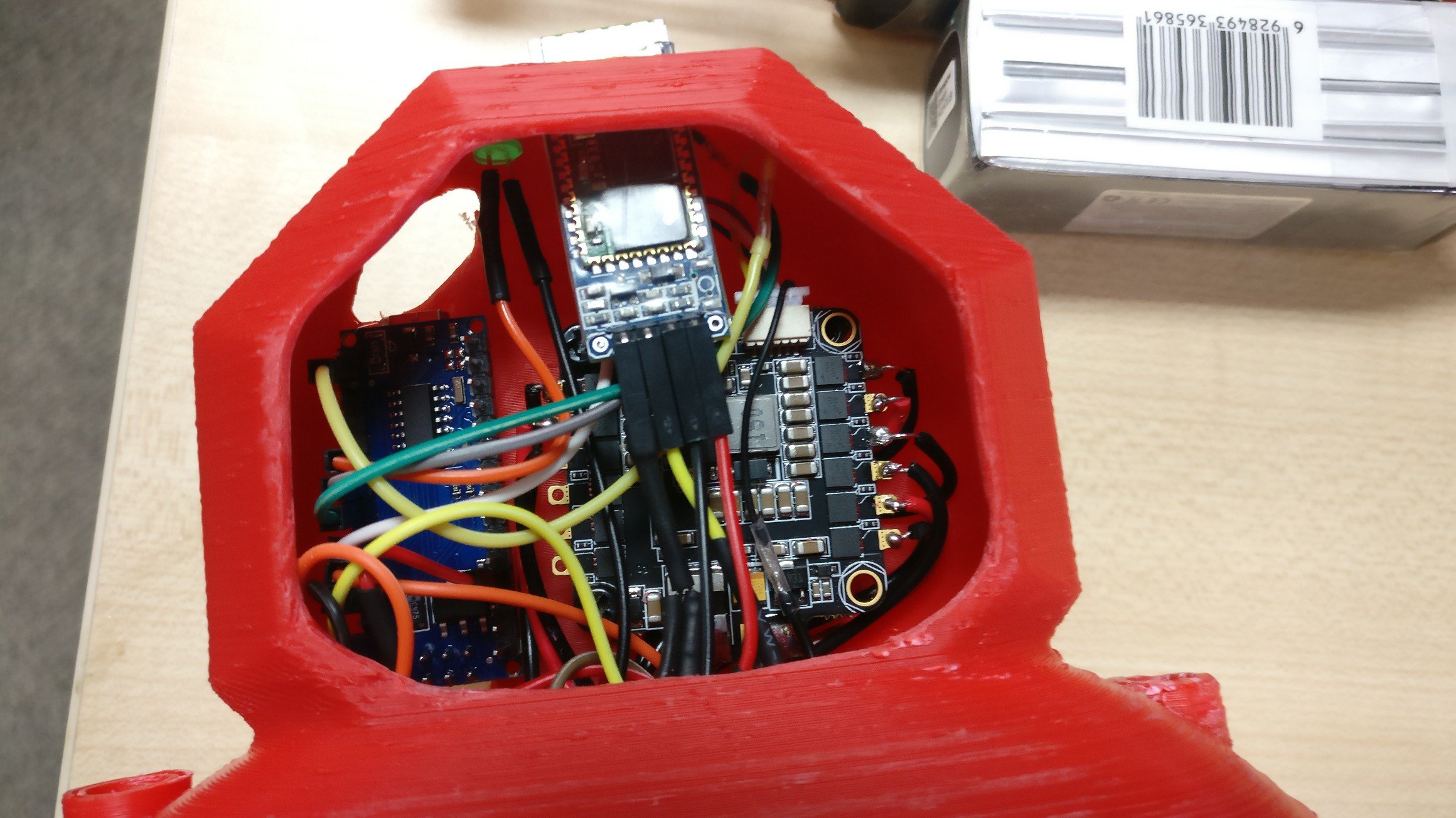 Stumble Posted October 12, 2018 Author Posted October 12, 2018 (edited) Next update! A big one. I've installed the electronics and man was that a mission! I didn't plan enough before building which meant I was fighting for a lot of space where there was none. As you can see from the pictures I have a 4 in 1 ESC which I mounted right at the front in the nose cone (Yeah, let's call it that). Into that, I connected the 9 wires from the three motors and had to make sure they were all spinning the right way, etc. next I drilled a bunch of holes and hot glued in the Arduino and a led which is used to tell me when to plug in the battery (more on that latter). I also had a little Bluetooth connector chip thing which I can use to connect my phone to control the drone. Basically, I did a bunch of soldering, unsoldering snipping wires and pulling my hair out in frustration. I needed to extend certain wires an had to solder all these bits and pieces together but I kept doing it all wrong! In the end, I got there! Then we tried it! It was awesome! I haven't actually done any proper coding yet so all we could do was set the power of each motor and twist the servo. By doing this you can see it worked! Sorta. I obviously didn't trust letting go of the drone, but from the video you can see I wasn't holding it but just keeping it in place so it wouldn't fly away and kill one of us. And that was only at %50 throttle. I'm excited! Even though its taken a very very long time I'm actually getting somewhere! If only I could do this at home and not for 1 hour each day at school.... mhmm. Salute! Edited October 12, 2018 by Stumble 1