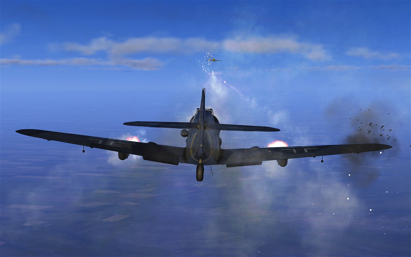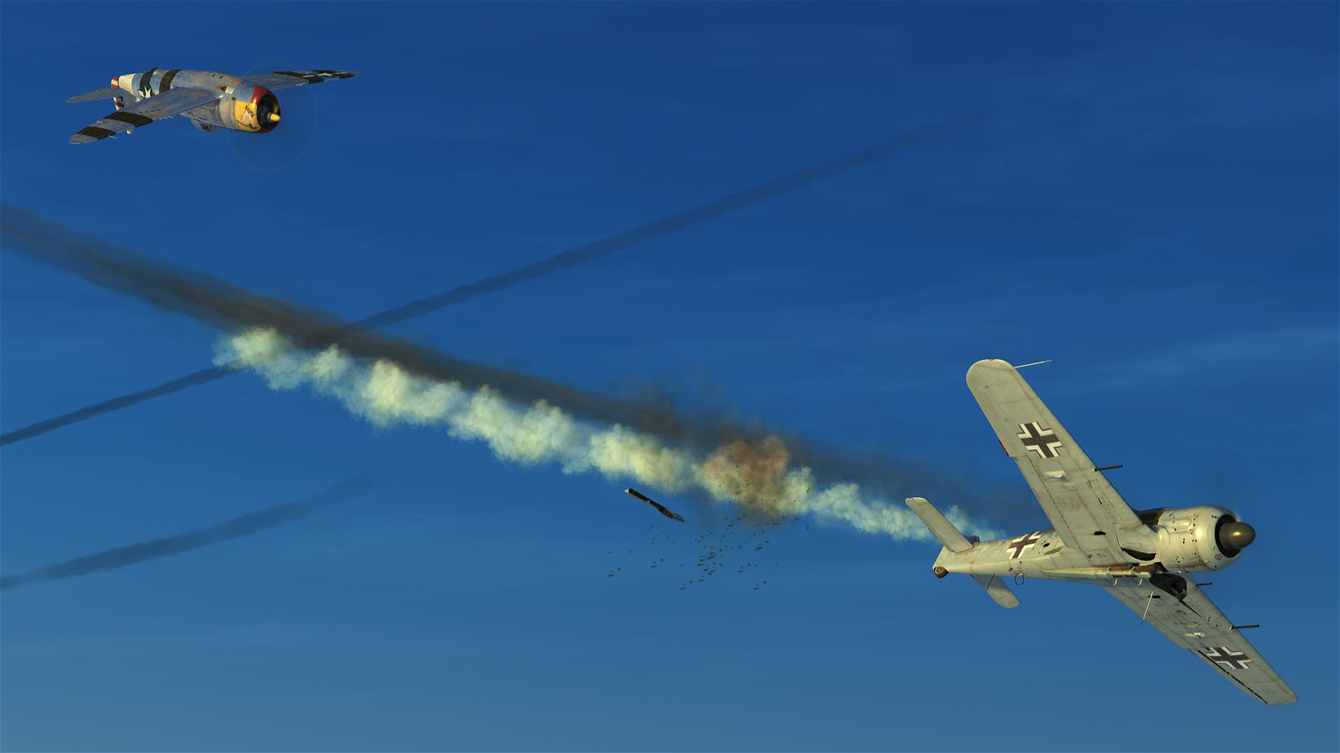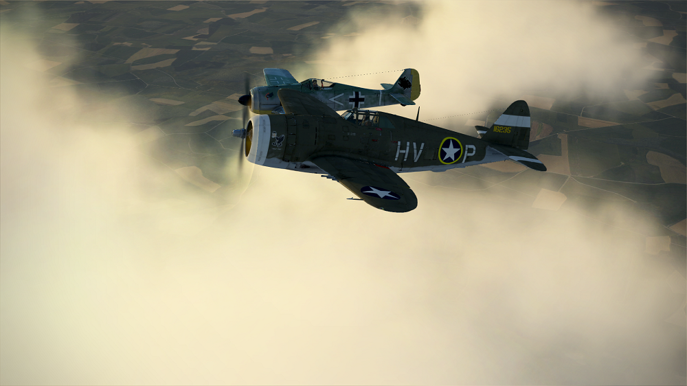 oc2209 Posted March 17, 2021 Posted March 17, 2021 I'm flying the P-47 exclusively lately, in career, so that's why these will all look pretty similar. I also can't touch 109s unless they're busy attacking my wingmen. By contrast, I can tackle 190s solo. This last kill is pretty funny to me. I was going too fast, and had a limited amount of time to aim. I lined up one wing to hit his fuselage, knowing the other wing would totally miss him. I wasn't expecting the explosion from such a short burst. The debris bent my prop, but I glided back to friendly territory. Sometimes the P-47 can be pretty damn sexy. This is one such time: Needless to say, the above skin is by far my favorite of the defaults available. I don't like white and black invasion stripes, but just black works with the bare metal. The tail's also great. 3