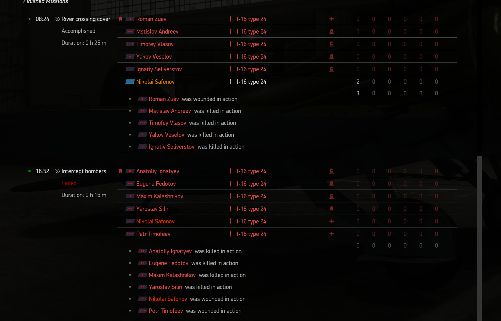 cripplehawk Posted May 2, 2021 Posted May 2, 2021 (edited) My character's (Nikolai Safonov) first day in combat in the 629th IAP in August 28th, 1942., one of the few squadrons that have an I16s still in frontline service near Stalingrad. That day he made 2 sorties A lot of his fellow pilots were Killed in Action. Safonov himself was wounded and had to bail out. Putting him out of combat for a week. He was awarded a "Medal for Courage" and a Red Wound stripe. Edited May 2, 2021 by cripplehawk 1
