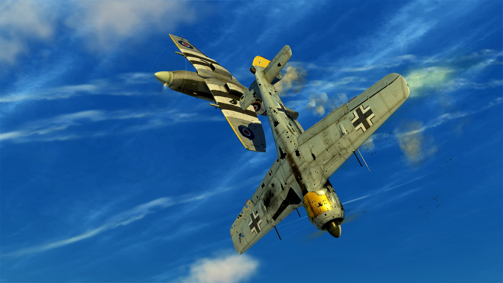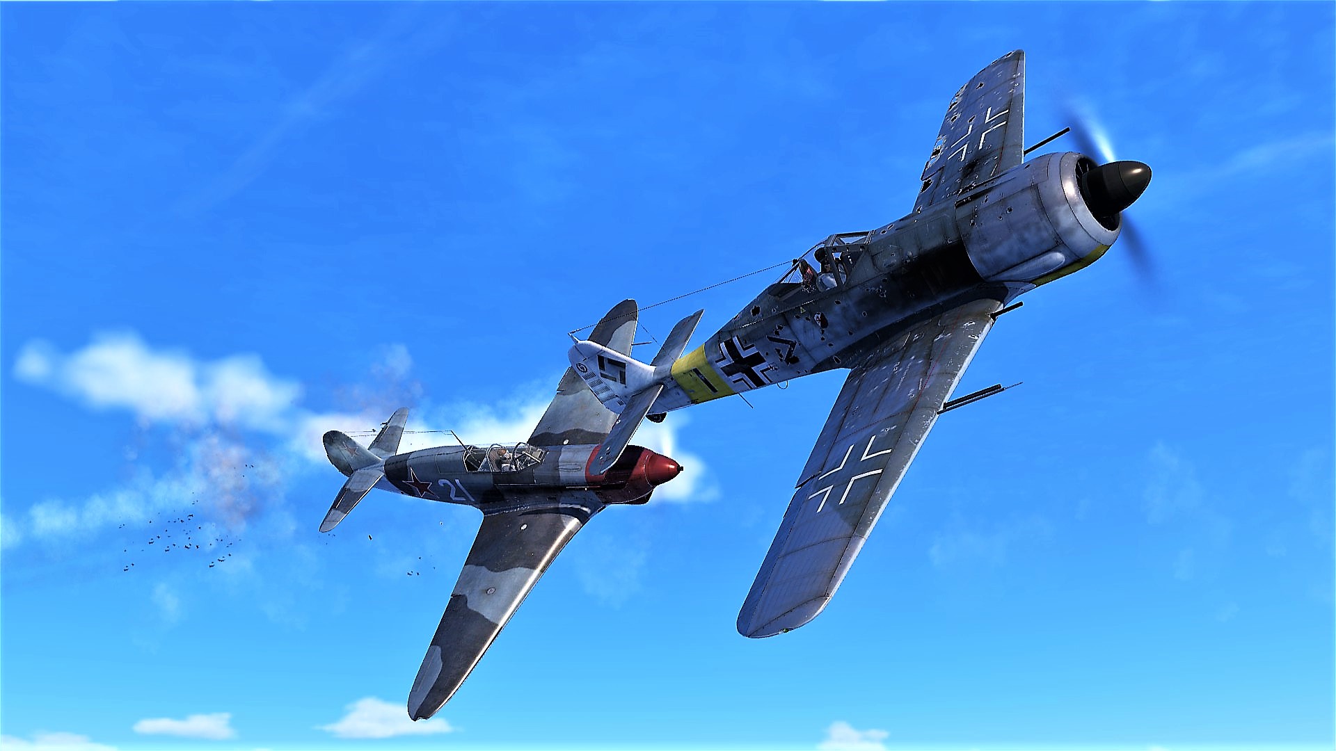 oc2209 Posted May 13, 2021 Posted May 13, 2021 This one looks like I was trying to do a trick shot; but really, it was just more convenient to fire without rolling upright. I fired briefly at the top of my loop, and kept on with the loop. It also prevented me from being an easy target to his wingmen. A 109 rolling at near stall speed would take about fifteen minutes. 30mm overkill on the P-38's glass tail. Hi-alt high jinks. The first place I decided to stop social distancing: the enemy's tail. 3