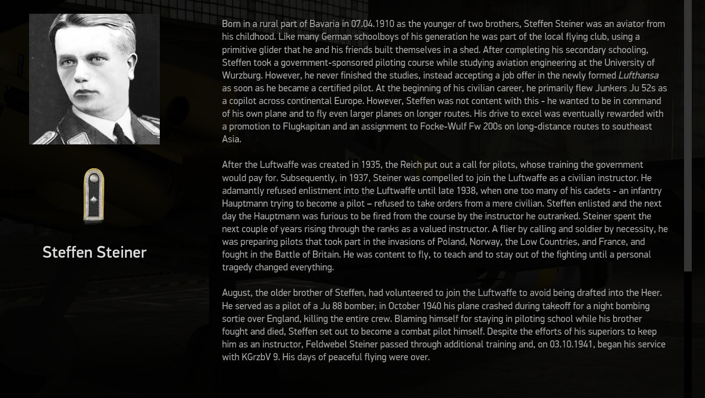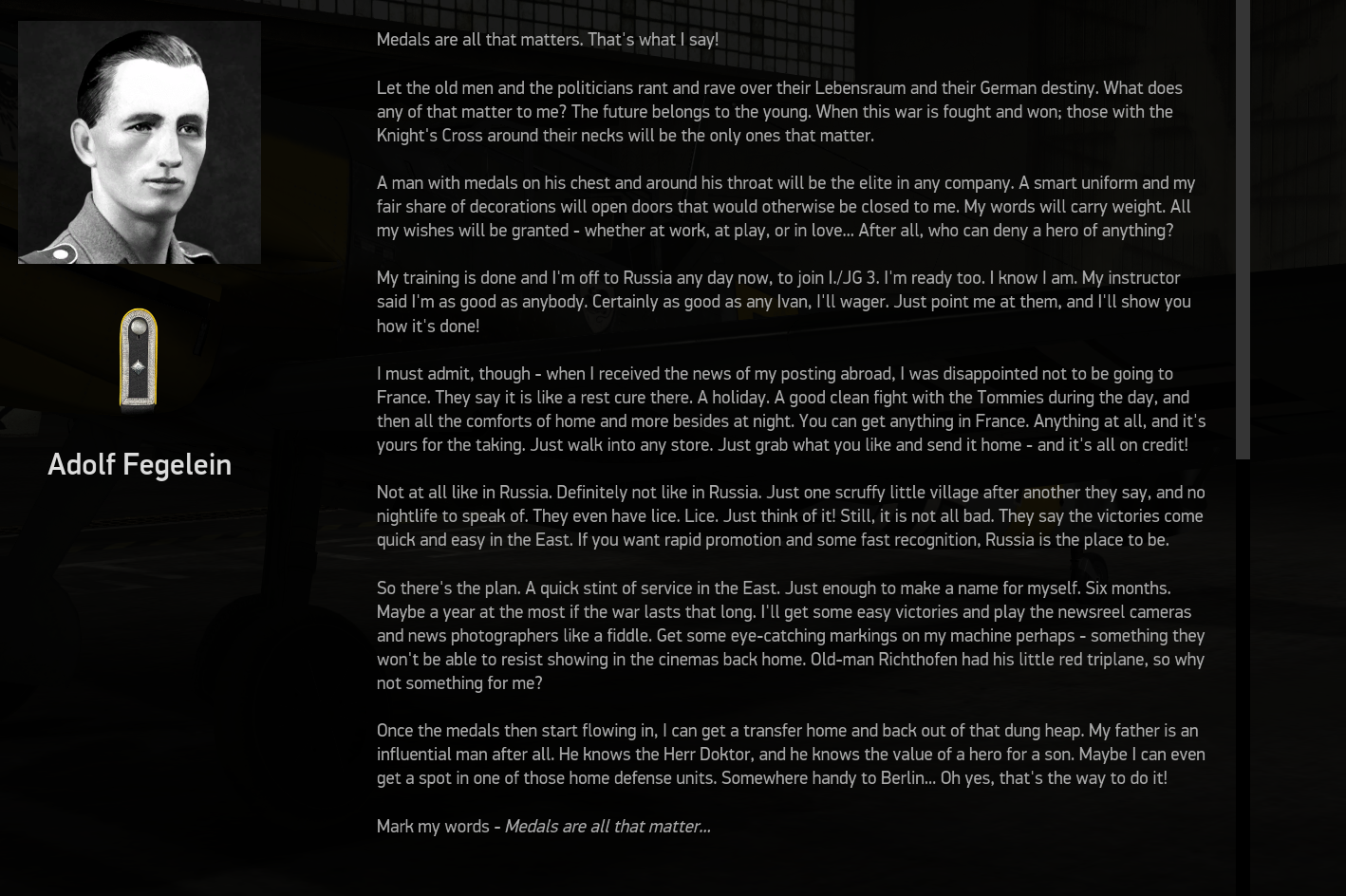 cripplehawk Posted October 25, 2021 Posted October 25, 2021 My new pilot...He has connections and yes he is a distant relative to a notorious individual. He already did one sortie so far...It was surprisingly uneventful. No enemy contact despite being in JG3 in the Caucasus near some city that lies west of the Volga River...... Stalingrad. But that will soon change. Like his distant relative...He has a making of a ruthless careerist. 1