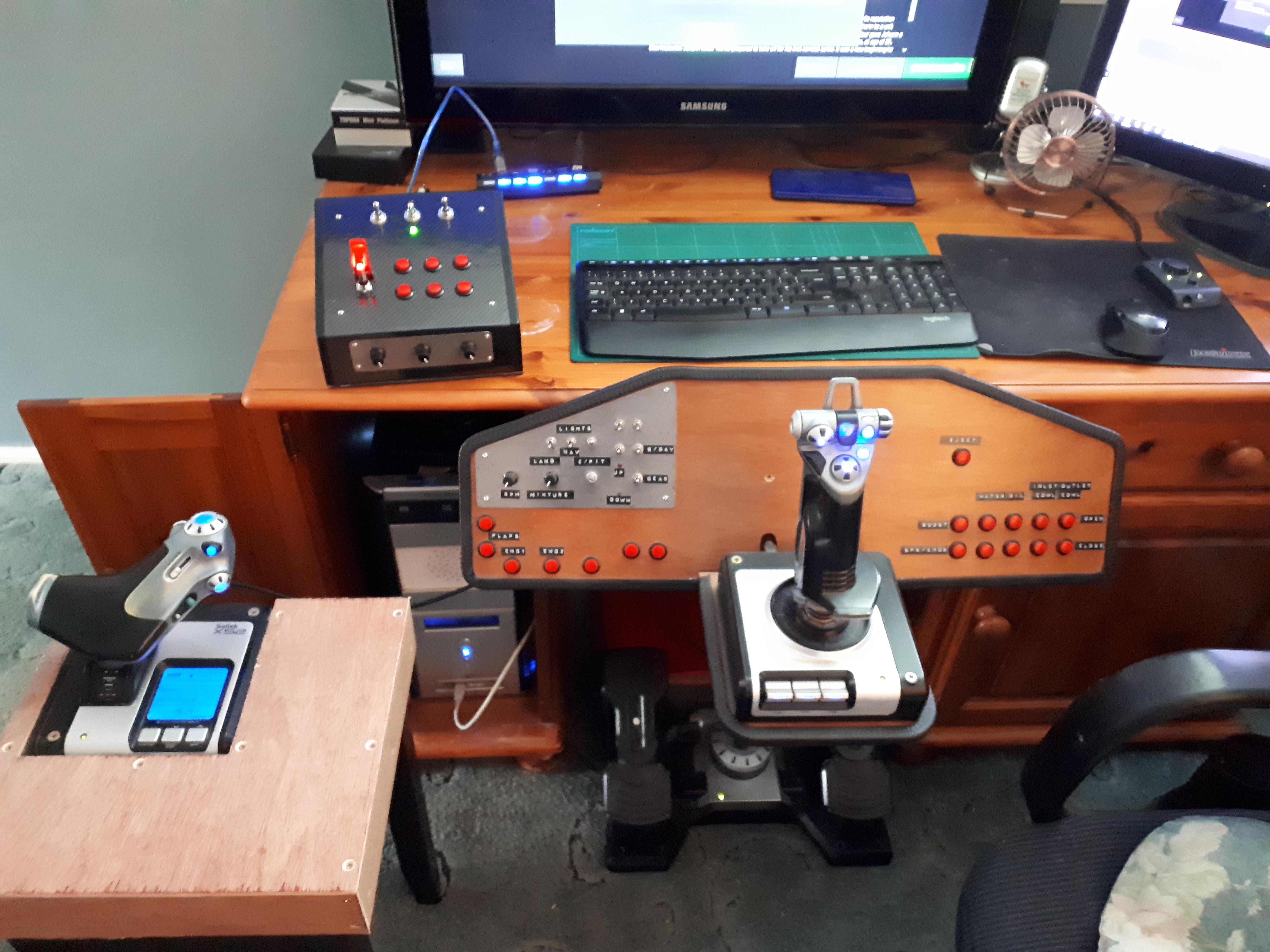 AtomicP Posted September 14, 2018 Posted September 14, 2018 1 hour ago, SAS_Storebror said: Maybe you'll find my "switchbox" project interesting in that regard too: https://www.sas1946.com/main/index.php/topic,58176.msg644830.html#msg644830 It's 5 axis, 40 buttons, 10 two-position switches and 10 three-position toggle switches. Works perfectly fine with both BoS and the good old Il-2 1942. Mike I wish I had the time for something like this. Not with a toddler around though! Instead, I sourced a secondhand Logitech G13, programmed it to my liking and printed sticky vinyl labels for the keys. It's currently set up for BoX and works really well.