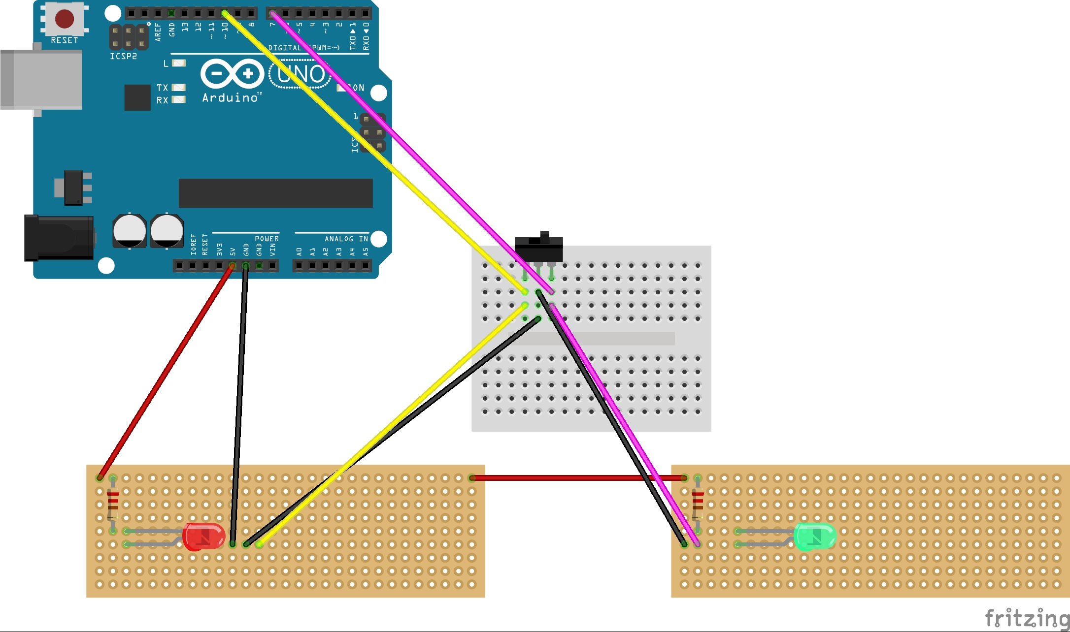 sparty72 Posted September 12, 2018 Author Posted September 12, 2018 1 hour ago, GVL224 said: Hello. There is a question on the LED on the toggle switch. Have you connected it to the voltage separately? Ok! the LED + is connected directly to 5V with a 220 ohm Resistor in between and the LED - through the the switch toggle ground, inputs go through to the board, as you can see im using an Arduino Uno lol. If i remember correctly the image is basically how i wired the LED's and switch up! Hope this helps m8 I am of course assuming you mean the the red and green LEDS and not the illuminated toggle switch with the safety cover, for that you will have to wire input, ground and 5V normally and then set the input switch to LOW in the sketch corresponding to which og the pins you use, assuming you are of course using and arduino uno. If the switch state remains HIGH the illuminated toggle light wont work properly and the LED will be trying ti light up in a weak way whilst in the off position and the switch will not activate properly. (As i found out through trial and error) and i am ni no way and arduino expert so please check for yourself Regards Sparty