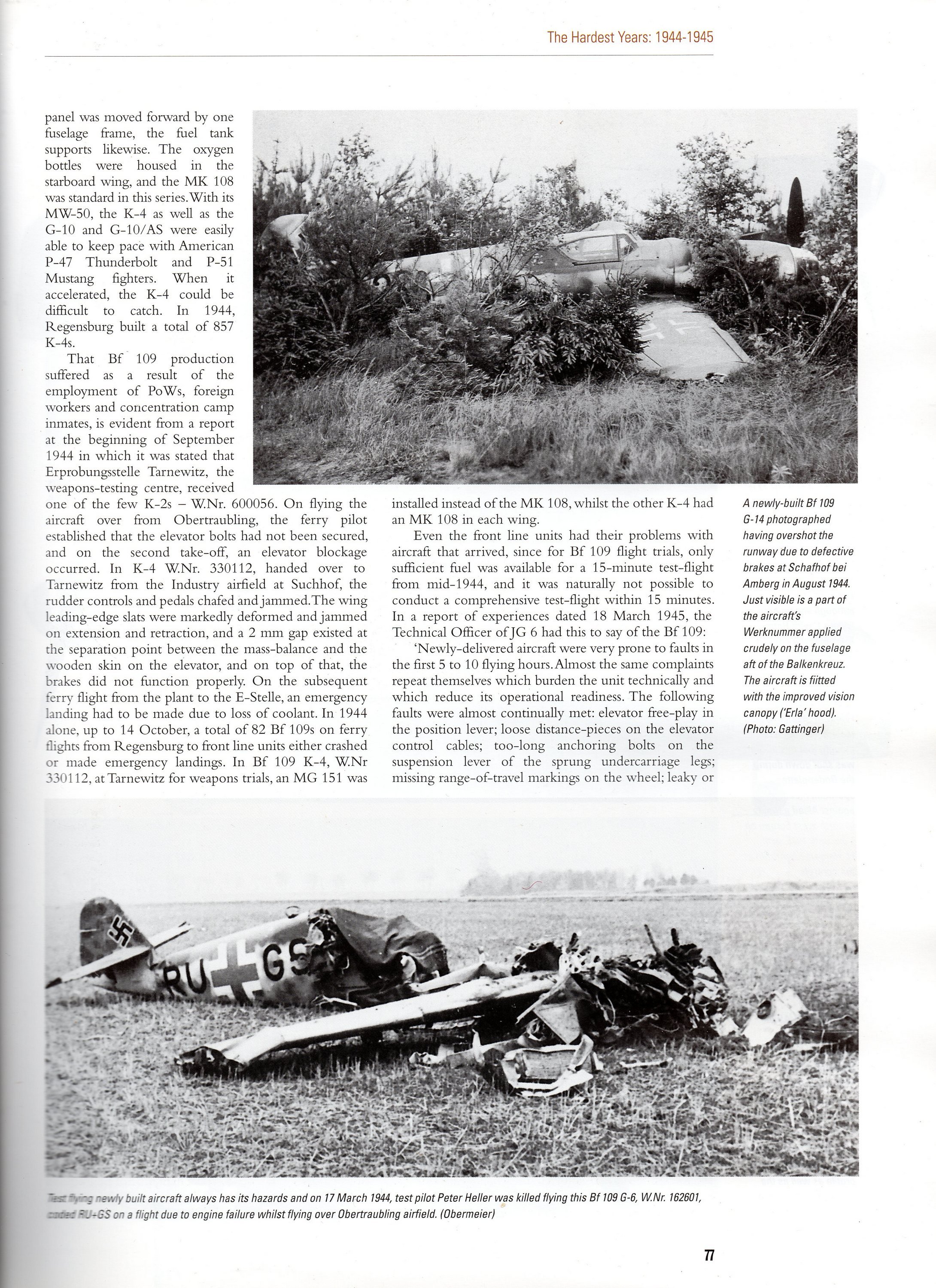 MiloMorai Posted September 14, 2018 Posted September 14, 2018 20 minutes ago, SCG_Riksen said: Guess you cannot guarantee that they did not have a single K4 1.98 ata, can you? Can you? ..an extract from Lorant/Goyat "Bataille dans le ciel d'Allemagne" ...(a translation) At Kleinkarolinenfeld, around ten pilots who no longer had aircraft piled into a truck at dawn on 27 April 1945 in order to drive to the airfield at Bad Wörishofen and take delivery of Messerschmitt 109s fresh out of the factories. Fw. Arnulf Meyer (9. Staffel) never forgot the scenes they witnessed that day: Rows of Messerschmitt 109s and Focke-Wulf 190s lined up around the airfield perimeter, others out in the open (!) under the odd camouflage net. Teams of oxen in yokes in the midst of all this enabled the aircraft to be moved around without utilizing any manpower or fuel… At least one hundred fighters from the assembly lines were dispersed around the field. The Officer that met us showed us the latest sub-types to be delivered: Focke-Wulfs with in-line engines and in particular the Messerschmitt Bf 109 K, an improved sub-type of our “Gustav” model. There was bustling activity on the field. Aircraft were landing and taking off constantly. There was no airfield protection Rotte in the air. Our surprise was even greater when we were told that thirty brand new aircraft were due to arrive at the depot that day if the necessary pilots to ferry them in could be found. We were presented to the airfield commander who had set up his office in a comfortably appointed wooden shack: a fatherly Major who gave us a pleasant welcome. Of course we wanted to take the Bf 109 Ks… He asked us for our papers indicating our various type ratings but after scrutinizing them, he handed them back with a shake of the head and simply said: “sorry, I can’t give you any K-4s. You’ve only flown the G-10, so take the G-10s!” We tried to explain to him that whether they were the G or K variant, they were still Messerschmitt 109s and any mods were almost certainly to be of a minor nature, unlikely to impact on the handling qualities of the aircraft. He did not appear particularly convinced by our arguments, but I noted how keenly he eyed us smoking our American cigarettes. These were retrieved from US prisoners and our Spieß always had them in his stocks. As naturally as possible, I offered the Major one of these cigarettes. His face lit up. Just for good measure, I left a barely started packet on his desk. He thanked me and told us that he was going to see what he ‘‘could do”. In the minute that followed, more packets of cigarettes changed hands and in this way we soon had authorization to take the Messerschmitt Bf 109 K-4s! We went to select our Messerschmitts in the company of the line chief, who asked us what our destination airfield was. The fuel crisis had also reached this field. Our aircraft were fueled with enough for thirty minutes flying time, which was largely sufficient to get back to Kleinkarolinenfeld. On the other hand the armament magazines were empty. We were given parachutes and life jackets. Suddenly we saw a car drawing up and out climbed the depot commander. He told us in a voice bereft of emotion that he was not sorry that we were taking the 109 Ks. Then he read the text of a teleprinter message he had just received. The presence of American troops and tanks was reported ten kilometers from Bad Wörishofen and he was ordered to immediately destroy all the aircraft housed on the airfield. The Major explained to us that the 109s were easier to blow up than the 190s, as they carried as standard a delayed-action 3 kg explosive charge in the fuselage housed next to the fuselage fuel tank. We smoked a last cigarette together with the officer. The imminent debacle seemed more of a relief to him than anything else. He had fought during the First World War and had been wounded but was of the opinion that the disaster befalling our country was of a much more serious nature on this occasion. He hoped that we would soon be back among our families and that we would not risk our lives pointlessly. He started up his car and drove off. My first takeoff in the Bf 109 K held no surprises. The aircraft was poorly trimmed and the compass was not functioning, which meant that I had to follow my comrades blindly. A typical product of our war industry in 1945: the instruments were incorrectly calibrated and there was nothing coming through the oxygen mask. Fortunately our flight level did not exceed 1,000 meters. We all landed without incident at Kleinkarolinenfeld. Happily enough the brakes worked… III./JG53 was based at Kleinkarolinenfeld from 13.4.45 to 1.5.45. 1 2