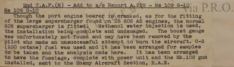 Kurfurst Posted September 14, 2018 Posted September 14, 2018 (edited) British intel reports of crashed G14 and G10 fueled with C3, from January 1945. Bf 109 K-4 W.Nr. 330 ... "Gelbe 7", 3./JG 27, Rheine, December 1944. Marked with C-3 fuel triangle. Source: eBay auction via facebook.com. Courtesy of Sinisa Sestanovic, Bf 109 from Anton to Toni Group, Facebook.com, 20 September 2017. via Marc-André Haldimann Edited September 14, 2018 by VO101Kurfurst 3