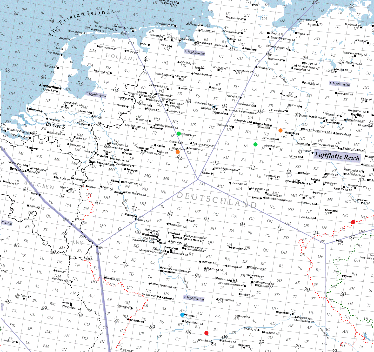 MiloMorai Posted September 14, 2018 Posted September 14, 2018 The bases of I./JG27 (orange), III./JG27 (green), III./JG53 (red) and IV./JG53 (blue) after Mar 20 1945 with regards to the cut-off date for the Bodenplatte map.