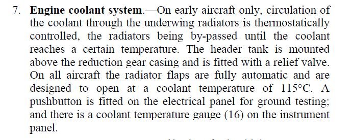 JtD Posted October 3, 2018 Posted October 3, 2018 I've only been reading up a little on the radiator relief valves fitted in various aircraft. The relief valve in the Spitfire was mentioned to relief itself at about 0.25at overpressure. Which might be enough for a glycol mix to reach the referenced water temperature limits. I also had a quick look at my Hurricane documents, and there the relief valve limit is also 0.25at, but followed by quite a bit of extra info which implies it's not all that simple. Before a bug report goes out, it would be nice to know the details of the Spitfire V and IX. The point of relief valves is not so much to not damage the radiators, it's more about preventing the water from becoming hot enough to damage the engine. In this sense, time limits coming with temperature limits might also refer to losses of (pressurized) coolants.