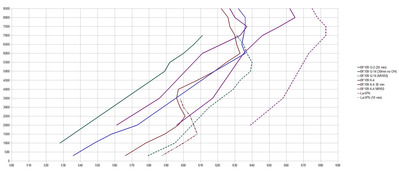 LeLv76_Erkki Posted November 20, 2018 Posted November 20, 2018 6 minutes ago, 77.CountZero said: what were you ias on 7km, i got 486kmh ias max in strait, on deck 590kmh with 1.8ata, (610kmh ias with 1.98ata), 396kmh ias at 10km ( p47, 570kmh ias at 100m, 470kmh ias 7km and 385kmh ias at 10km) IAS 486 km/h at 7000 m. I didnt test above 8500 m yet but P-47 is still nowhere near as fast. Gap is closest at about 7000 m and about 15 km/h(except of course K-4 can use MW50 5 minutes longer). P-47 really needs 150 oct fuel and a better propeller against 109 K. Against G-14 matchup is much more even: G-14 is faster low, P-47 high, above about 6000 m.