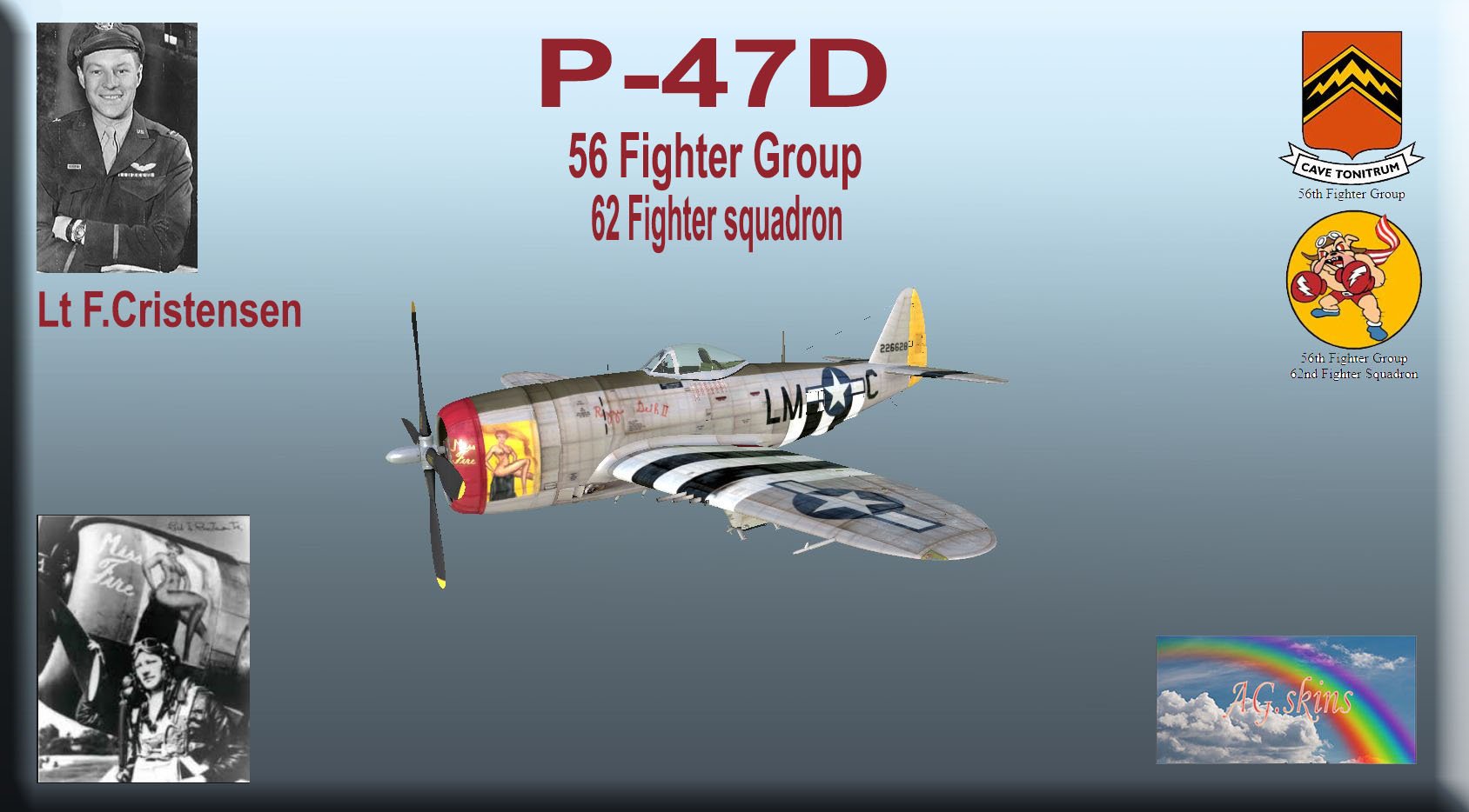 Grippen7 Posted March 18, 2019 Posted March 18, 2019 (edited) Hi all, I want to do a free skin request for a P-47D Thunderbolt that was shot down during the war in my home town to remember and honour this brave pilot. I dont have any photo's of this plane or the crash site. The pilot was killed in action on 11 November 1943 in P-47D 42-8668 356FG/360FS. The name of the pilot was Dolor A Martin. See this link for more information: http://www.americanairmuseum.com/person/42213 Memorial plate: https://www.hanshike.nl/wp-content/uploads/2012/07/9.-Monument.jpg Plane info: https://aviation-safety.net/wikibase/wiki.php?id=51260 https://verliesregister.studiegroepluchtoorlog.nl/rs.php?aircraft=&sglo=T3077&date=&location=&pn=&unit=&name=&cemetry=&airforce=&target=&area=&airfield= http://www.8thafhs.com/get_mia_aircraft.php?acgroup_id=42&mission_date=1943-11-11 https://www.75jaarvrijheid.nl/2359759-bennekomse-scholieren-planten-viooltjes-voor-amerikaanse-jachtvlieger Serial No Type Squad Sqd Code AC Pilot Rank/Given Names Markings Comments MACR 42-8668 P-47D 360 PI Martin Lt. Dolor A Stewpot Named for his son. Lost in this a/c 11 Nov 43 - KIA. 1450 Info above from: http://www.littlefriends.co.uk/356th-fighter-group/ Best regards, Grippen7 Edited March 18, 2019 by Grippen7 Added links
