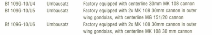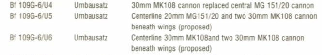 sevenless Posted December 16, 2018 Author Posted December 16, 2018 (edited) 10 hours ago, LukeFF said: Also, the image in your first post is of a testbed aircraft - it has its Stammkennzeichen applied on the fuselage sides, which was done at the factory. That lettering wasn't used on frontline aircraft. It may very well never have been operational and only in testing in Rechlin, but later on discarded for operational use. Wasn´t able to dug out one single pic of a operational unit with those 30mm gondolas. As for designation: /U4 really meant only the central motorcannon. Gondola modifications were according to Lynn Ritger, SAM Publications 2007 designated as follows: Edited December 16, 2018 by sevenless