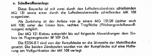 sevenless Posted December 16, 2018 Author Posted December 16, 2018 (edited) 22 minutes ago, LukeFF said: G-6/U4 could mean either the MG 151/20 gunpods or the MK 108 gunpods. I've not seen anything that says the MK 108 gunpods were ever used operationally. Well since they are in the manual it is the same as having 21mm rockets on the 190Ds. They were obviously there. Why not have them in the game? I´m still wonderíng if those underwing carrying 109s also had a MK108 firing through the spinner or if that was a 20mm. According to the manual it was a 109 G6 which carried a MK 108 in the spinner as per the U4 nomenclature. Let´s see if someone has some additional information about this "bomber killer" which carried three MK 108s. I have the whole manual here, from june 1944. They didn´t crank out manuals for non used weaponry did they? Edited December 16, 2018 by sevenless