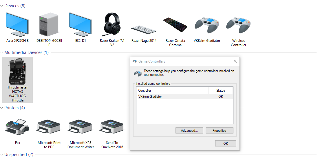 Kawaii-Anime_Girl Posted December 30, 2018 Author Posted December 30, 2018 (edited) Yeah I haven't even touched the TARGET software. But I went ahead and plugged back in the throttle into my current PC to see if it would at least read it, however the only thing different this time is it now displays under game controllers and not MultiMedia Devices, but unfortunately, It is still not reading the inputs of it as you can see here in the screenshot. It should be showing up in that box underneath the "VKBsim Gladiator". Edited December 30, 2018 by Dietrich_Wolfrum