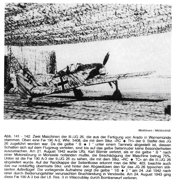 Grancesc Posted July 15, 2019 Posted July 15, 2019 (edited) Yel 8+I (WNr. 5408) belonged to the 9th JG26 and was painted in RML 74/75/76 standard scheme. It had yellow ruder and engine panel. In Aug. 21 1942 Uffz. Karl Borner had to make an emergency landing after an engine malfunction in Morseele. Here are more pictures of 9th JG26 machines from the same period. Spoiler Edited July 15, 2019 by SYN_Haashashin