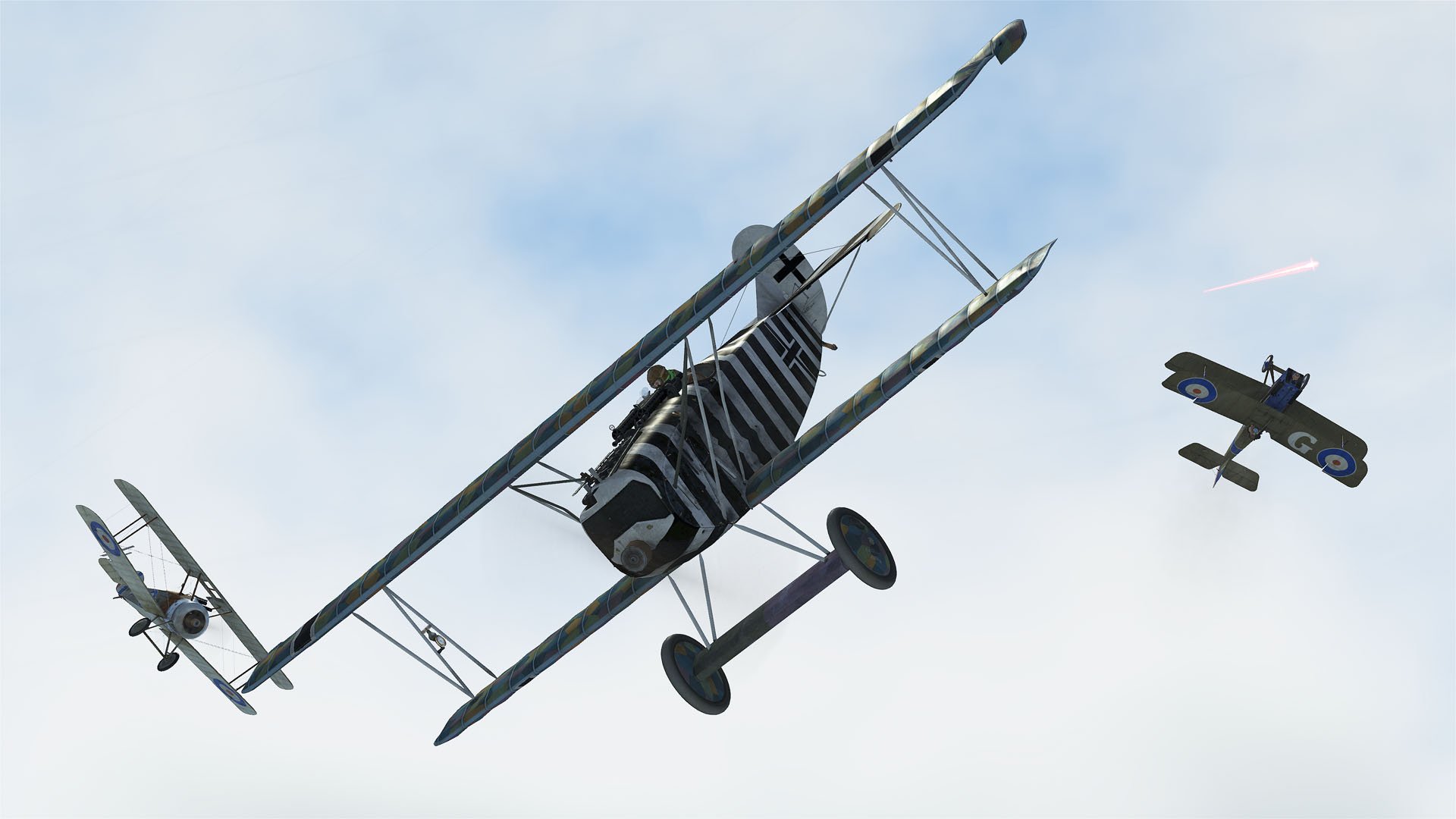 =IRFC=Gascan Posted August 1, 2022 Posted August 1, 2022 (edited) I had an absolute blast today. 87 players, 126 planes shot down, 87 ground targets destroyed, 103 flight hours logged. Here are a few screenshots to show some of the action. Things ranged from massive, intense dogfights swirling in a tiny piece of sky to small duels, climbing and diving to gain advantage between the clouds. Entente managed to push through the southern recon, but it cracked up on landing (apparently the wings just completely fell to pieces on touchdown). Although the flight out was relatively calm, the return flight was marked by multiple large flights of Fokkers climbing up to intercept and a fighting retreat. After that, the northern recon was successfully completed, with fewer interceptors rising up to the challenge. I searched for a German recon and found him completely by accident in the middle of a cloud. We then finished up with a pair of HP's attacking the factory, shipyard, army camp, and observation post, with machine-gun clearing provided by a DH-4. Very successful due to most players logging off, making it easy to fly uncontested to the targets. Sad to see everyone go: I was hoping to get a good dogfight with the HPs, but I made due with an AI Albatros near the observation post and a player Dr1 that followed me from the nearby dogfight zone. King Neptune sends two HP's to unleash hell. The factory is destroyed. The shipyard is destroyed. Cuban faithfully sticking with me to strafe machine guns before the big boy gets shredded. The Army Camp Center is destroyed. Cuban got one of the machine guns, Kotori got the other in the bomb layer/front gunner seat. Who says a bomber can't dogfight? Kotori and Hill take aim at an AI Albatros after I bullseyed the Observation Post with my last bomb. Hill fires at a Dr1 that chased us back from the observation post. One of the first dogfights down south. Another dogfight down south while interdicting the way home for the recon. Another dogfight down south, after the recon dragged a couple Jastas worth of Fokkers to come play. My Bristol got engaged after I took out the northern balloon on the way home from the recon. I put up a good fight with Talbot in the gun seat, but they cut my rudder cables early on and severely limited my maneuverability. An angry Dolphin spits fire at a recon plane that got really unlucky on the way home. Edited August 1, 2022 by gascan add description to the screenshots 4