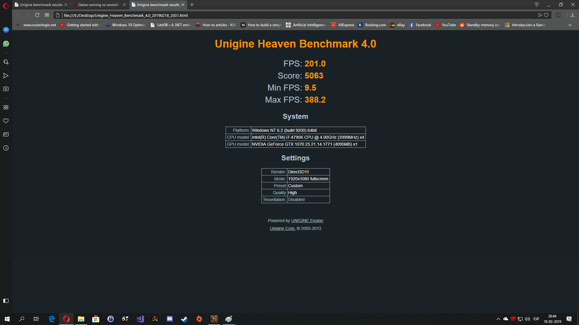 SJ_Butcher Posted February 18, 2019 Posted February 18, 2019 (edited) 45 minutes ago, 1.JaVA_KEBEN said: this is a test with mij old screen , its a 60 hz screen That doesn't matter, your system should be able to render much more frames than that, the screen is just able to show 60 as much but that doesn't prevent the system to render 1000fps, so you have a problem in your configuration setup Edit: just to prove my point I did the same test with a GPU inferior to yours and I have close to 400 fps Edit 2: I checked your settings and I missed some of them, now I did exactly the same test as you Edited February 18, 2019 by SJ_Butcher 1