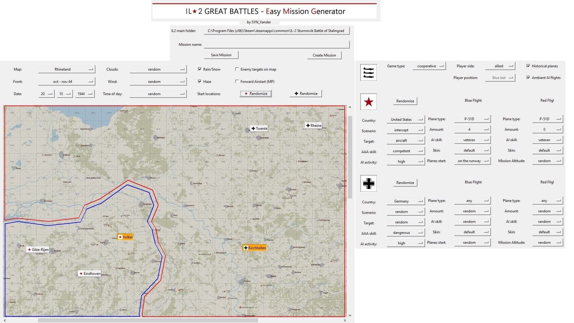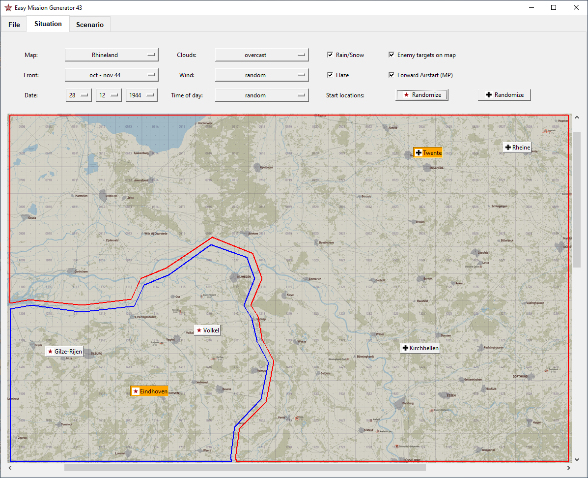 SYN_Vander Posted January 19, 2021 Author Posted January 19, 2021 (edited) I have done some work during the holidays and although I'm not sure if it's quite ready I thought I'd share the new version of the EMG here: <deleted, replaced by official version on the EMG homepage> It's a complete rewrite of the GUI part. I hope this will be a good base to add more functionality. The only functional changes: You can now select airfields in a map (not zoomable) and there are more options for randomization: Edited January 30, 2021 by SYN_Vander 6