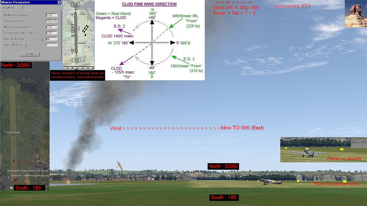 Sokol1 Posted March 2, 2019 Posted March 2, 2019 (edited) 3 hours ago, ladlon said: I have to look into how to actually KNOW about wind in CloD... The only way is ask for "Sector Controller" (TAB comms) before take-off, in air-start missions no way - in this case is a mission design flaw, mission maker should inform in briefing the wind conditions. In IL-2:Great Battles the bombsight interface read wind direction/speed s from mission files. TAB > 7 > 3 "Request TakeOff Ccondition". You receive as answer, e.g. "Wind 030 5 Strip 210" 030 = wind blowing to - contrary to RL convention "coming from" 5 = wind speed in meters/second 210 = the ideal orientation runway, that generally don't match the existing runways, so use the more closed existing. And no, 1940's SE England runways don't have numbers in their ends. * This above answer is from Upavon (EGDJ), where runways are 04 (44º) and 22 (224º), so use 22. (Can see each airfield details in Printable Airfields folder). In this topic more on how CloD wind are set - seems following an AutoCad method. https://i.postimg.cc/FHbyh3qv/Wind-Angle-FMB.jpg https://theairtacticalassaultgroup.com/forum/showthread.php?t=27634 * In fact, the ideal runway is signaled with yellow boards for take-off and red-white for landing, but in this case only in your home base and destination base (the ones set in the mission), so if misson determina that you take off from Hawkinge for landing in Manston, but instead decide landing in Biggig Hill, no red-white boards there. And that boards only will show up - sometimes in weird places after "Sector Controller" authorize you landing. And no, you can't ask for permission, the "radio comm" for this is broken (denied/allowed inverted), so rest you be in the "right place, in the right moment", that just means enter in YOUR base capture radius. I think that now may you understand why are a picture of Sphinge in the linked image about CloD "Wing Angle". ? Edited March 2, 2019 by Sokol1