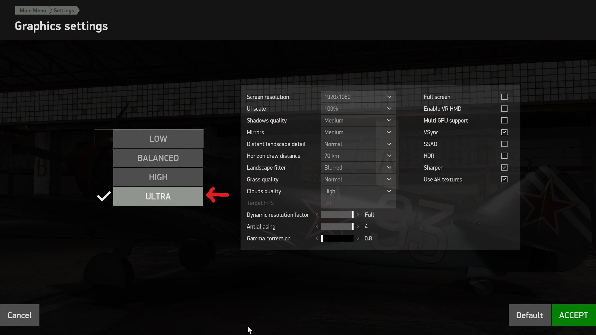Hawk-2a Posted March 1, 2019 Posted March 1, 2019 You could manually change the gamma in the startup.cfg to set it to a lower value than 0.8, but this is personal perference. What made spotting easier for me was really adjusting the Monitor settings (brightness, color, contrast etc.). I did it in Quick Mission when having an enemy at around 8k away and then pausing the game. Then tweak the monitor settings. All other graphic settings ingame however, must be changed in the main menu and require a game restart... Only gamma can be adjusted mid flight. 2