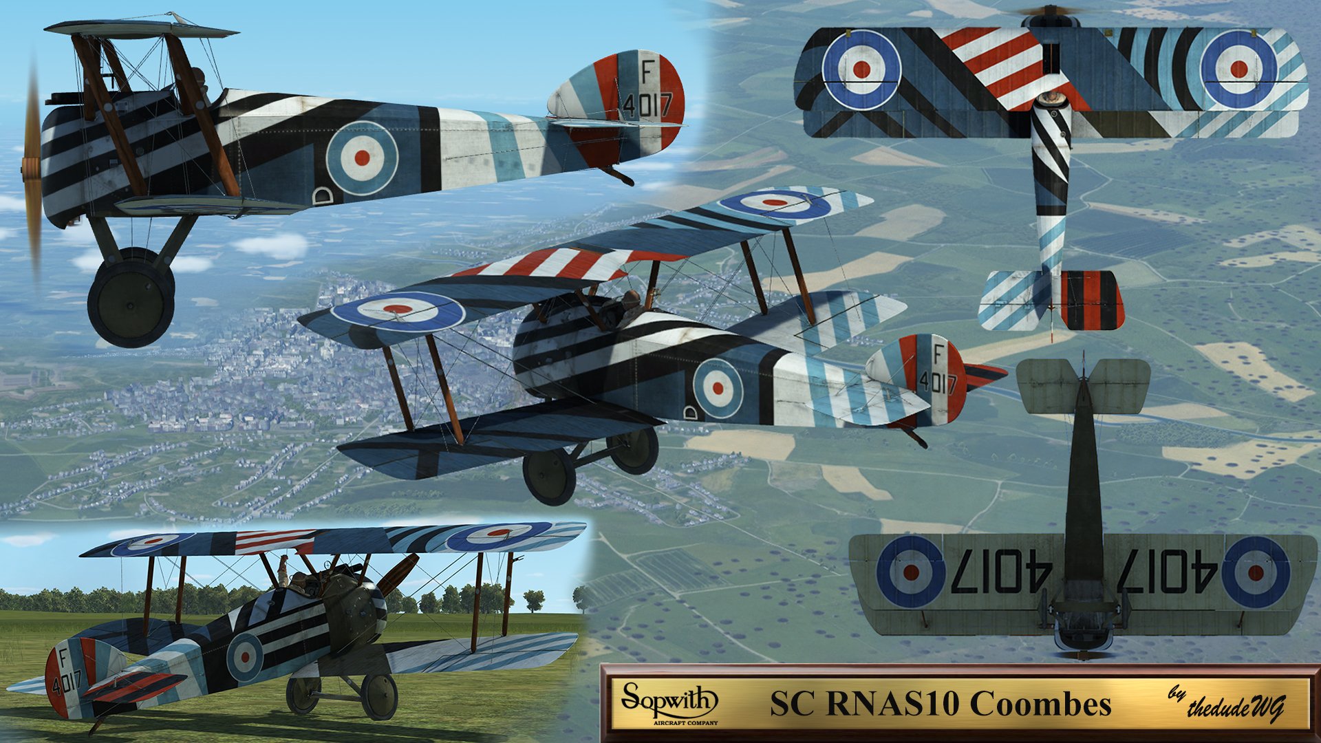the_dudeWG Posted April 9, 2019 Posted April 9, 2019 (edited) Howdy mates! Sorry for the delay, but here is my version of this skin. I tried to preserve the original artwork shown above, with only a few modifications based on what I saw in the original photograph (shown below with notes). I noticed the blue on the fuselage roundels and rudder were lighter than the normal royal blue, yet not quite as light as the lighter blue stripes. Also, the blue on the left side of the fuselage (which wraps over the top, rearward of the cockpit) is likely the darker blue, not the light blue shown in the artist's rendering. Hope you all like it! S! http://www.mediafire.com/file/dvdf1uhk0ukzkoa/X_SC_RNAS10_Coombes.dds/file Edited July 20, 2020 by the_dudeWG 12 2 6