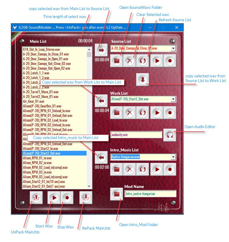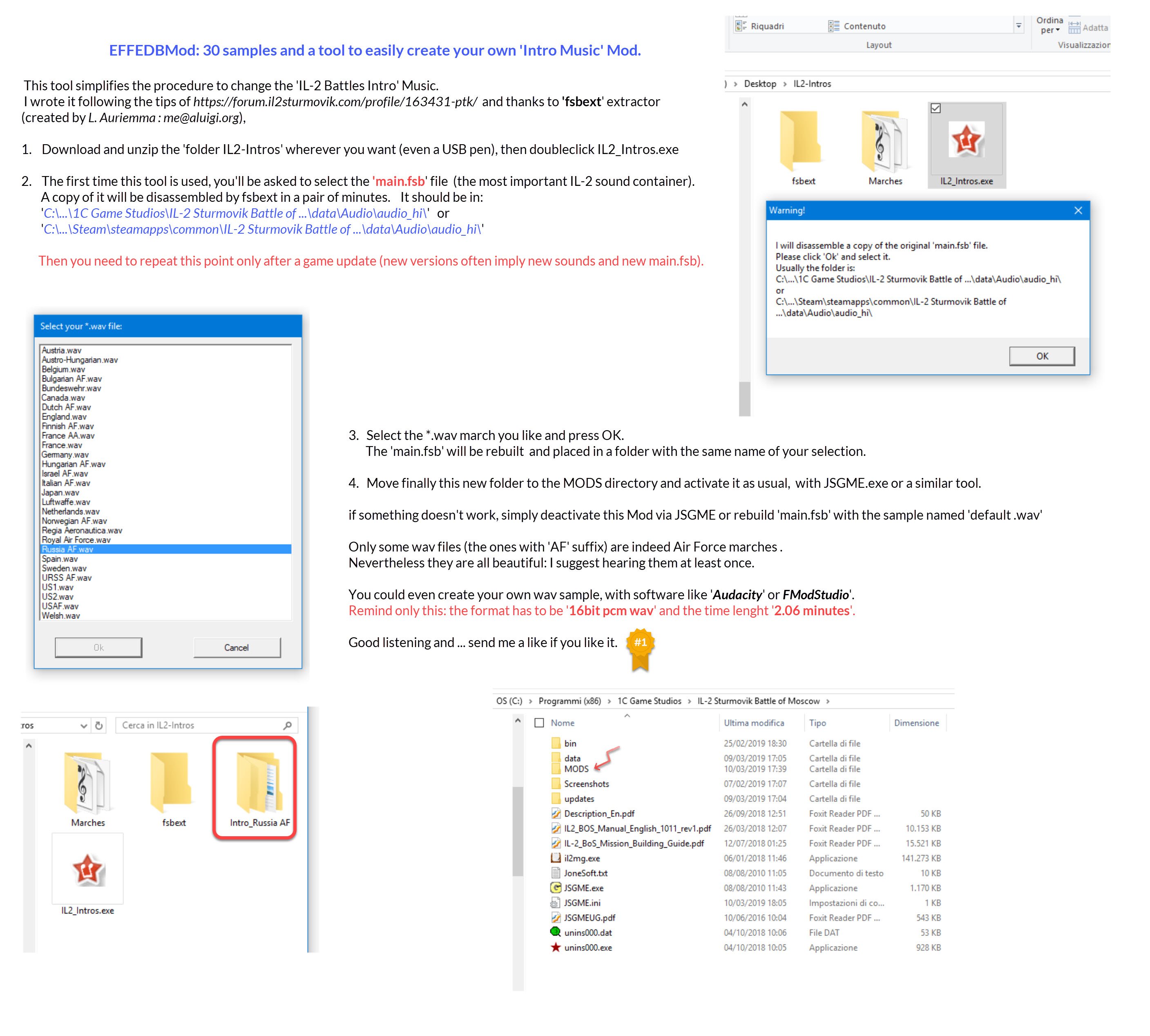 EffeDB Posted May 13, 2019 Author Posted May 13, 2019 Sorry, I'm not an expert of FMod Studio. When I wrote this tool, my real target was the possibility to change their boring intro music with something more exciting and politically incorrect. Just to make angry some People's Commissars. ? What's more, I think every plane should have its own sound folder, like the skins. Otherwise, we risk making a mess.... the same wav for different airplanes is not a wise solution. My tip is changing tones and volume by using Audacity.exe or trying the same thing with FMOD. In this case, you could recreate main.fsb inside there. You have to study FMod however, and that's not easy.