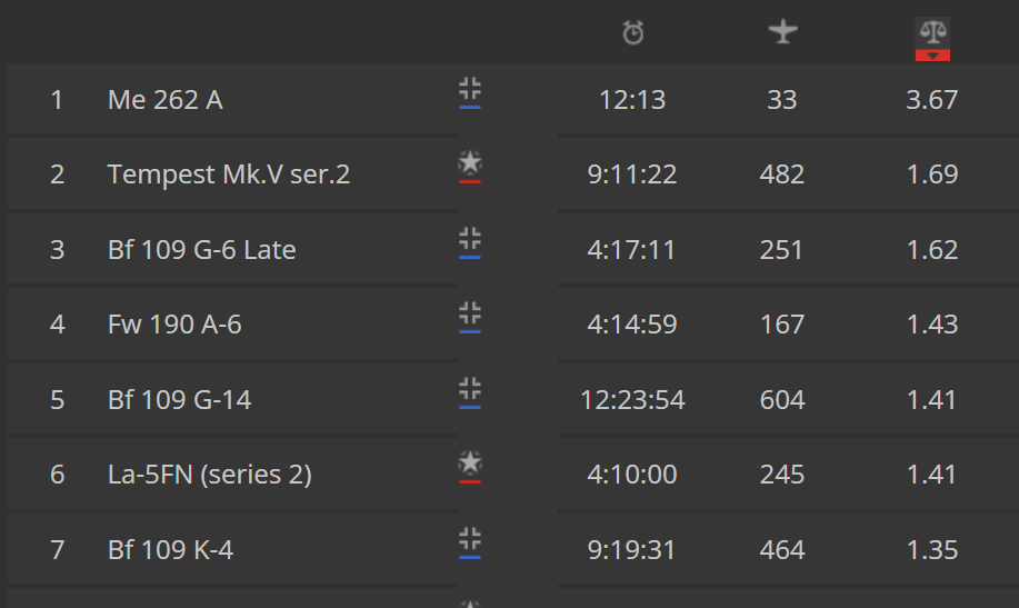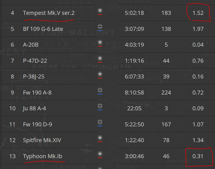 RedKestrel Posted December 14, 2021 Posted December 14, 2021 2 hours ago, Sketch said: Maybe you're right. It's got to be very obvious to us all that those two planes are overpowered. It's all over the forums and in every community Discord about how overpowered they are! "We should put the overpowered Typhoon and Tempest on lockdown! There's only one hope for player resurgence!", is all I hear day in and day out. I bet even Jason is tired of it. What will the community do? But before we do all of that... Where are you getting your statistics from regarding the Allied advantage of mid to late war planes? What proof do you have that the Typhoon and Tempest are well overpowered compared to other planes; especially the Axis planes? For my part... And hear me out... I went ahead and took some screenshots the plane stats for Combat Box. Which, as of this writing, we're 14 days into the month. And you can find the plane stats here -> https://combatbox.net/en/all_aircraft/?tour=41 According to my research - for this month only - the Tempest and Typhoon have a very low KDR (Kill To Death Ratio). As a matter of fact, there are some German planes that are doing better than the Tempest and Typhoon. And what about the Me262? It has a 6.0 KDR! WOW! Are you sure the Allied planes are overpowered? Lets investigate further! Maybe the month of December was a fluke in the stats? Let's look at last month's stats. I'm sure it'll prove that the Tempest and Typhoon are superior! Well look at that... Still a very low KDR for the very overpowered Allied planes! Not even a 1.0 KDR for the supposedly overpowered Typhoon. Again, I ask where are you getting your information? Is it anecdotal? I bet it is. However, I am sure October's stats will prove differently... .31 KDR for the Typhoon?? Barely 1.52 for the Tempest? The G-6 late has a better KDR? Okay... Okay, maybe it's Combat Box??? I'm sure Finnish, will show that those planes are far superior to their counterparts! Let's take a look at this month's stats so far for Finnish: Well those stats look better, but still very similar to it's counter parts. And the Typhoon still doesn't even have a 1.0 KDR. It seems to die a lot for being so very overpowered. Maybe last quarter's stats on Finnish will give a different report. Not too bad, but most assuredly not overpowered. We can look at every month/quarter for the last year for both Finnish and CB, and you'll notice that the Typhoon and Tempest have a very low KDR. As a matter of fact, most German planes have better than or equal to the Tempest and Typhoon. Furthermore, the Me262 has had over 5.0 KDR for each month. That makes the Me262 nearly five times more deadly than the Tempest or Typhoon - according to my facts. The difference is so huge, that it makes you look silly saying "Put the OP Typhoons and Tempests on an availability program like the me262." Combat Box's plane stats for the month of December. Me262 with 6.0 KDR! Tempest... not so much. Combat Box's plane stats for the month of November. Me262 wasn't flown at all (because certain players hunt them down and kill them before they take off - just like in WW2). The best plane? LaGG3! What the heck? The Typhoon isn't even on the list! Finnish's plane stats for December. Maybe we should look at the Yak-9? How the heck does it have more KDR than the Tempest? Me262 with nearly a 5.0 KDR!! Finnish's plane stats for last quarter. The Me262 is at nearly 4.0 KDR, and double the KDR of the Tempest and Bf109G6 late - which are very close in KDR. Well regardless, thank you for your suggestion. I appreciate your time in writing feedback, and we'll file it in it's appropriate place. PS: If you can't tell, stuff like this just gets under my skin, because it undermines the mission builders, the admins, the players, and especially the community as a whole. You're just hurting the community with your misunderstandings. Maybe I'm wrong in thinking that; maybe you're a purple pilot and you have proof that those planes are overpowered and I've missed it. If so, please prove it with facts, and I will apologize for my rant. LMAO at the 'OP' Tempest just barely beating out the 109G-6. It's a whole 0.07 better! PLS NERF! The Typhoon, on the other hand, is actually OP, but only because people make sloppy bounces on fighter bombers and fly right through their prey's gunsights, or burn their energy coming around for another attack. 4 20mm Hispanos are God's punishment for hubris.