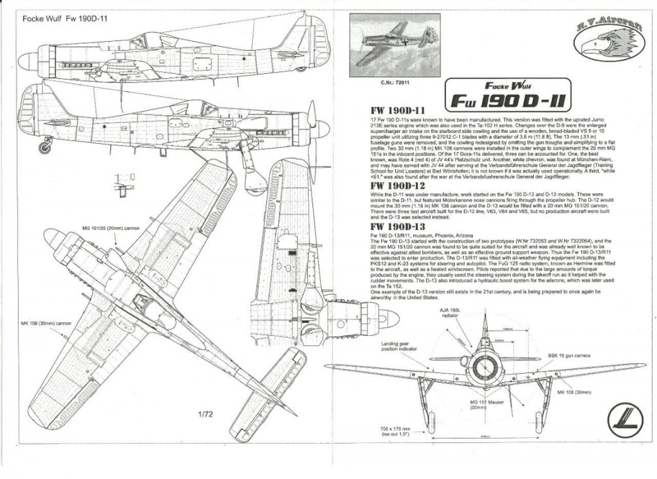 69th_chuter Posted April 13, 2019 Posted April 13, 2019 (edited) Actually, it looks like the Air Force Museum example (Junkers Bernburg?) doesn't have the access holes nor does the D-13 (wings by Junkers Bernburg), NASM F-8 (wings by Arado?) and the F5 (Fw Bremen?) here in the US. On the other hand White 1 (Dornier) does. Of note the Ta152H0 at NASM doesn't either (H0 wings were modified 190 wings, H1 were dedicated 152 wings). It could be a/some manufacturers incorporated these holes for production and/or it was an acceptable field mod for maintenance accessibility with the proviso that the hole then be patched over. Fabric patches usually have pinked edges (google images: aircraft pinked patch) to reduce fraying and the Germans would have likely sprayed over them (and pinked seam tape) with a sandable primer making them virtually invisible so not seeing them in photos isn't necessarily a guarantee they aren't there*. Museums today don't appear to be in any mood to maintain the bondo and tape/patch work on these old planes for corrosion reasons. * You can sure tell when the tape has been pulled off though - lol. PS. The prop on the D9 at the USAFM is a Ju88 prop from the vast Ju88 spares inventory they had. The tips are at a slight negative pitch because to increase the pitch at all would run the prop's trailing edge into the cowling. 190D and Ta152 props all had this root trailing edge trimmed away. Edited April 15, 2019 by chuter Mention 190 prop 1