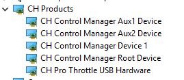 AH_Olds Posted April 28, 2019 Author Posted April 28, 2019 (edited) Did some more testing on Control Manager. Tried running in compatibility mode for Win 7, and it actually worked for about 5 min. Loaded map, and was able to use the buttons. At one point I tried doing that and programming a function, and then it stopped again. I looked at Device Manager, and the devices listed for Pro Throttle had changed. One of them was missing. I rebooted and it came back. Here is what shows in Device Manager when the program is running correctly: After I run the program, and the buttons gray out, this is what I get: Trying to figure out why the device disappears after the problem happens. It's like Windows 10 just shuts it off. I have gone through every item in the list to make sure the box about turning off devices is unchecked. I can run a different program, but I would like to figure this out. It might save someone else some problems. Edited April 28, 2019 by AH_Olds_