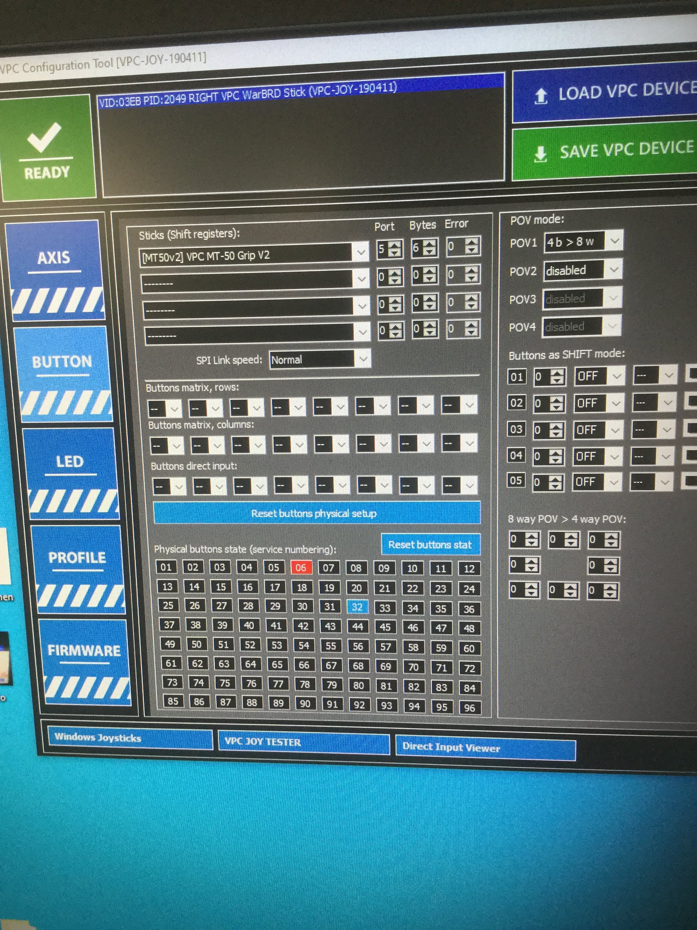 NiiranenVR Posted May 11, 2019 Author Posted May 11, 2019 (edited) So here a pic of my buttons , and when the ' dimsedut ' is down the '06' is active and when push it makes the '32' active .... Like fire rockets FX ...... So use them both in an active logical way in game I don't see .... Maybe make a new Q, but the brakes for russian - in game >slash< is with Virpil an axis , but not in game ..... How to make that ???? ( With 3 program Or in game ) Edited May 11, 2019 by IV./JG51-H_Steinbaur