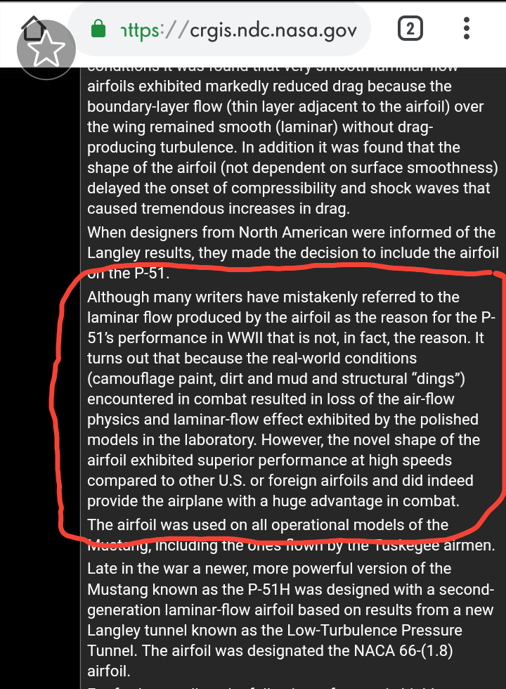 II./SG.1-MarkWilhelmsson Posted July 16, 2019 Posted July 16, 2019 https://crgis.ndc.nasa.gov/historic/XP-51_Mustang The wing design was a great improvement over previous models but not necessarily because of laminar airflow.