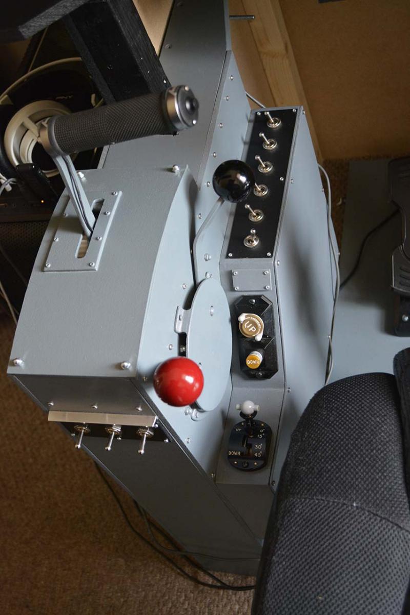 saunder Posted March 29, 2014 Posted March 29, 2014 I have made some modifications to the throttle I built last year. I have now added a button to the throttle handle a bank of switches U/C buttons and flap lever. The U/C buttons are from the Hunter and the flap actuator was destined for a Canberra. There are a few more additions in the pipeline so far I have used about 45mtrs of wire. I intend to invest in an extention for the joystick and make a few changes with that before doing anymore to the throttle. 3