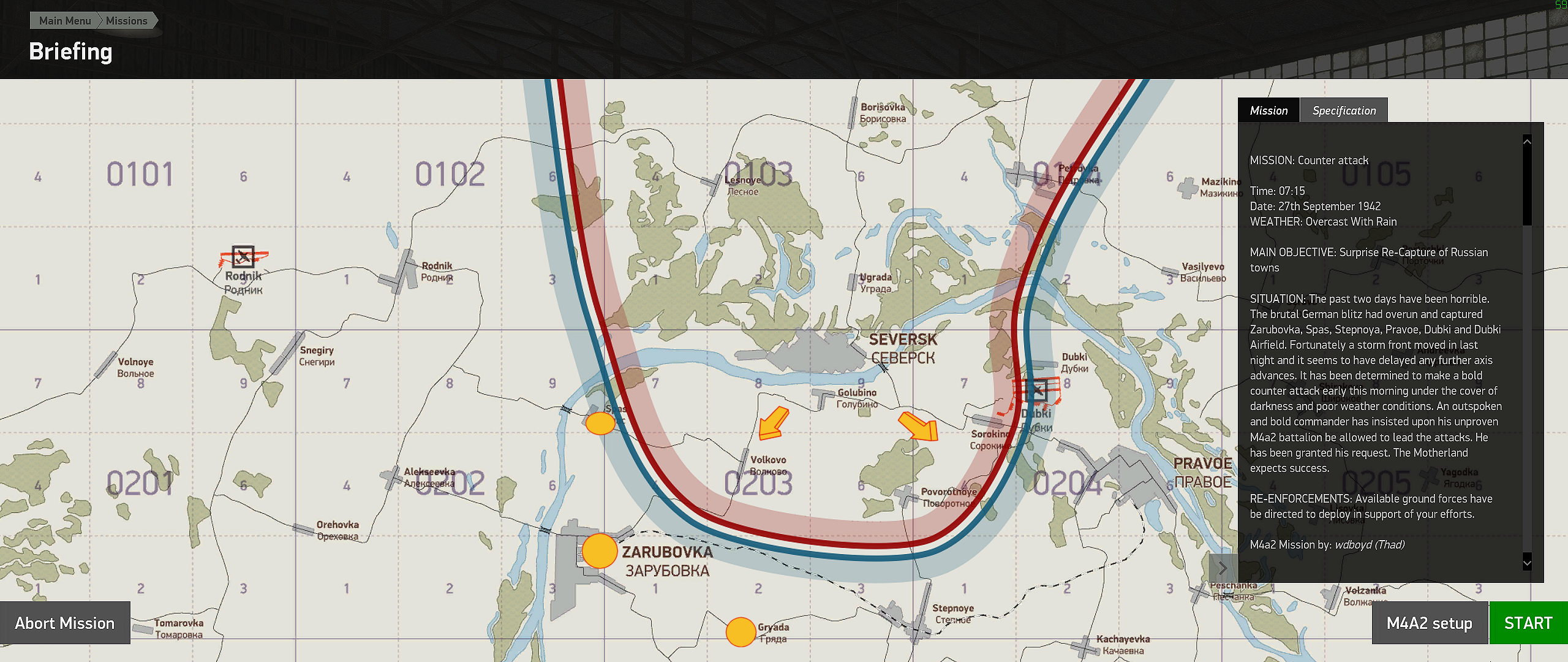 Thad Posted July 25, 2019 Author Posted July 25, 2019 (edited) Salutations, The missions attacks to liberate Spas and Gryada are 99% complete. Just some fine tuning. I will begin setting up the battle for the main objective, liberation of the town of Zarubovka today. This mission actually includes three separate attack missions. The first two occur at the same game time. As mentioned in the initial post, that means, you (the player), will need to choose which attack force to join. Don't you just hate those command decisions? Which ever Task Force you choose to join will receive the benefit of your tanking prowess (assumed) and receive additional artillery support to limit its' friendly casualties during their attacks. Afterwards, all surviving forces (if any), from the attacks on the towns of Spas and Gryada, will then converge on Zarubovka for the final showdown. Edited July 25, 2019 by Thad 1