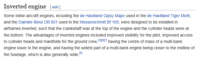 Art-J Posted August 9, 2019 Posted August 9, 2019 2 hours ago, danielprates said: I heard years ago in a conversation that one of the reasons for an inverted design was that the cranckshaft would sit higher up, thus making it easier to position the propeller with higher clearence from the ground. A "normal" engine would have a lower shaft so the propeller shaft would either result too low, or would have to be raised higher up by the means of gears, which raised weight, mechanic complexity etc. At the time I took that as the main reason. Now I am not so sure if that checks out. Is this correct? That might indeed be the case in the early years of aviation when all props were direct-driven. Certainly not later, though, when reduction gears lowered the prop shaft anyway. 1
