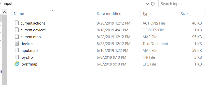pilotpierre Posted September 2, 2019 Author Posted September 2, 2019 I just checked "devices.txt in the input file and it has: configId,guid,model| 0,%22946fd960-c9c1-11e9-0000545345440380%22,CH%20PRO%20THROTTLE%20USB| 1,%22946fd960-c9c1-11e9-0000545345440180%22,CH%20THROTTLE%20QUADRANT| 2,%22946fd960-c9c1-11e9-0000545345440480%22,CH%20PRO%20PEDALS%20USB| 3,%22946fd960-c9c1-11e9-0000545345440280%22,CH%20COMBATSTICK%20USB yet the current.devices only has this: ffEnabled=1&ffShaking=1&mouseAcceleration=0&ffForce=1&mouseSensitivity=4&mouseInvertYAxis=0&joystickFilter=0