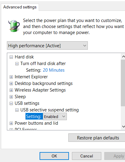 Thad Posted September 3, 2019 Posted September 3, 2019 Try this: edit your default/current power plan and disable selective suspend. Power Options->Advanced Settings->USB Settings->USB Selective suspend setting.