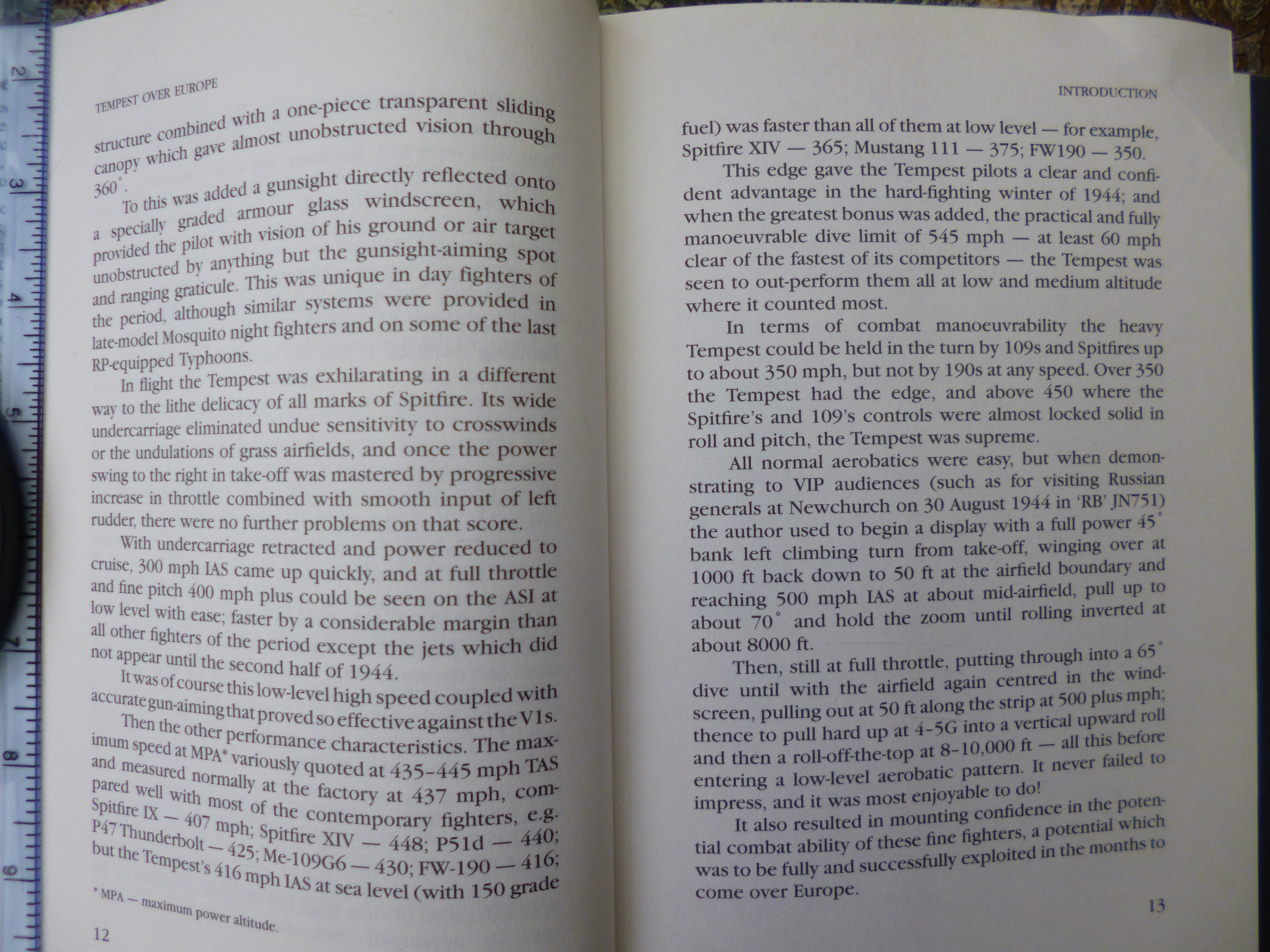 Talisman Posted September 23, 2019 Author Posted September 23, 2019 1 minute ago, [_FLAPS_]Diggun said: Memoirs are a secondary source at best. And pretty, err, divorced from reality at worst. E.g. Clostermann's 'The Big Show'. Very useful for a social historian, less so for a technical one. However, his credentials for giving us details on the Tempest V are impeccable. He is not just any pilot. The link below gives an idea of his credentials. I would not expect this book to provide definitive details regarding Axis aircraft and would expect such details to be open to correction, but I would expect to be on very solid ground regarding details in this book regarding the Tempest V. It is the Tempest V that the author is an expert and an authority on. https://en.wikipedia.org/wiki/Roland_Beamont Happy landings, Talisman