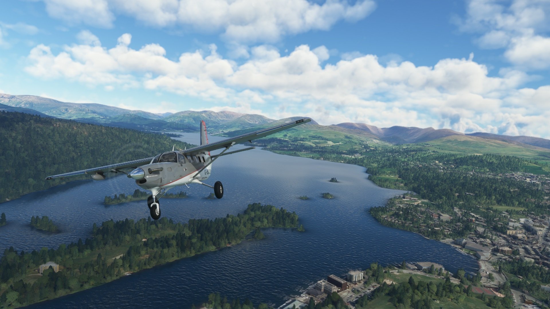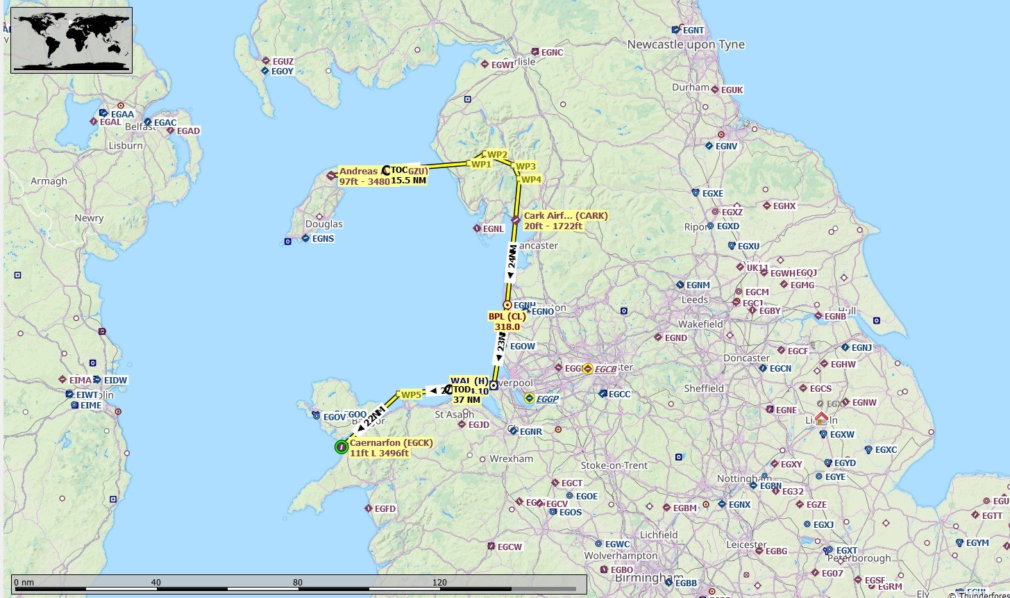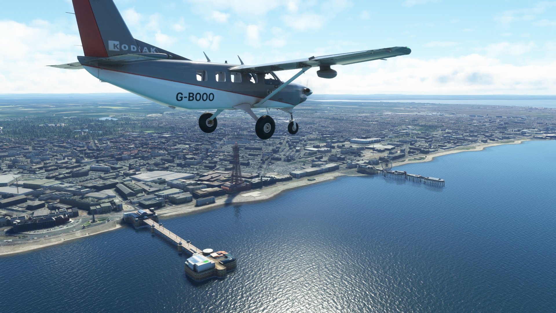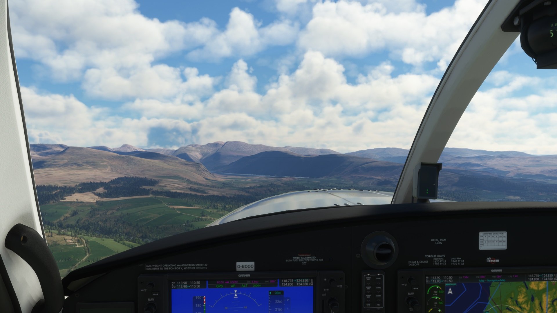 BOO Posted April 26, 2023 Posted April 26, 2023 (edited) Day 15. Andreas, Isle of Man – Caernarfon, Wales. 164 Nm, Real Time, Real Weather PT 1 Today’s Leg is a flight down memory lane and one Im looking forward to. I mis-spent a very happy youthful summer in the Lake District as an instructor at a Sea Scouts camp in the late 80s. Ever since I’ve been welded to the place. It’ll be interesting to see what the sim makes of it. The Monday morning weather at Andreas is bright and breezy with scattered clouds. The forecast says I can expect this until I reach Wales and its there Ive decided to terminate the leg as I know good weather is forecast for that region in the days ahead. From the Isle of Man to the mainland its a short hop and its not too long before we are recharging our luminous dials over Seascale…… ….and heading into heaven. Wasdale with Scafell looming over it. My settings probably don’t do it justice but from the cockpit, its magnificent. Passing though, we roughly follow the route of a 1,000,000,000 DoE-ers heading over the Langdales and onto Windermere beyond. The sim shines here and Im back there in my mind. Thanks to Orbx’s Northern England add on all the things I expect are represented. And some very well so, such as Low Wray Castle. More unexpectedly, so is Low Wray Farm, my home during the summer of 1988. The rest of Windermere looks like Windermere, albeit without as many boats – I am happy. I am also very happy with the We Love VFR add-on. There is a radio/telecoms mast in Ambleside. Not very big and tucked a little out of the way behind the main car park. And its there! Never in all my visits have I ever thought seeing it would make me smile so much. The Hills of the Southern Lakes are soon behind us and Morecambe Bay in front for our transit along the NW coast of the England. Blackpool, in all its grim glory. Its Airport where, in 1978 my dad took me to see my first Airshow. A seminal moment in my life. Southport – not sure if its global warming but I can never remember even seeing the sea from the promenade. I mean, you could literally walk back to the IoM on the beach it was usually that far out. Livepuelle. Its all there thanks to the Orbx add-on but more of that later. As we leave Liverpool, something becomes apparent with the Add-ons. This image shows it quite well. Unlike the rest of the scenery, they go black. That’s not great Ill be honest and I expected a bit better. Its like the CloD of yore were you didn’t need to navigate to a target cos it was always this black blob in the distance. The We Love VFR stuff is fine by comparison. Day 15. Andreas, Isle of Man – Caernarfon, Wales. 164 Nm, Real Time, Real Weather PT 2 We continue, transiting the Northern coast of Wales. This, I think, is Rhyll. I wasn’t going any closer to find out just in case it was. More memories. The Great Orm and Llandudno. One of my parents’ favourite day trips and a nice place I think. We work our way around the headland and up the Menai Strait. Taking in the views of the mountains beyond (Im not getting into their new/old naming conventions of the ranges and National Parks – Beautiful Welsh Mountains – that’ll do) As we approach Caernarfon, the weather, as predicted, takes a turn. This is the end of the leg. Touching down on the centreline I swear I hear “Sev-EN” shouted over the headset. Parking up, all that’s left is for me to do is apologise for being English (again) and book a BnB. Edited April 26, 2023 by BOO 5